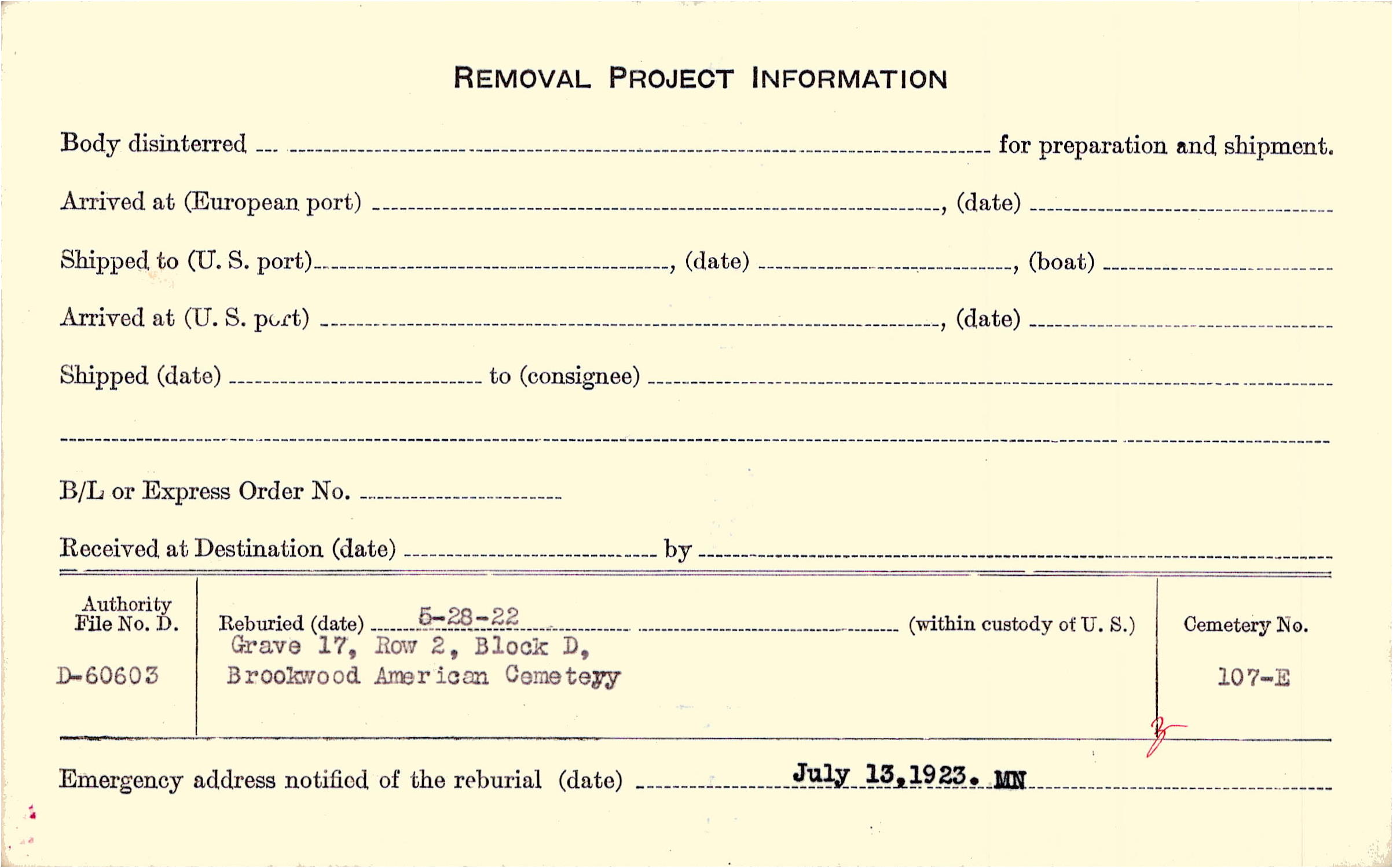 | Permanent Burial in Foreign Cemetery |