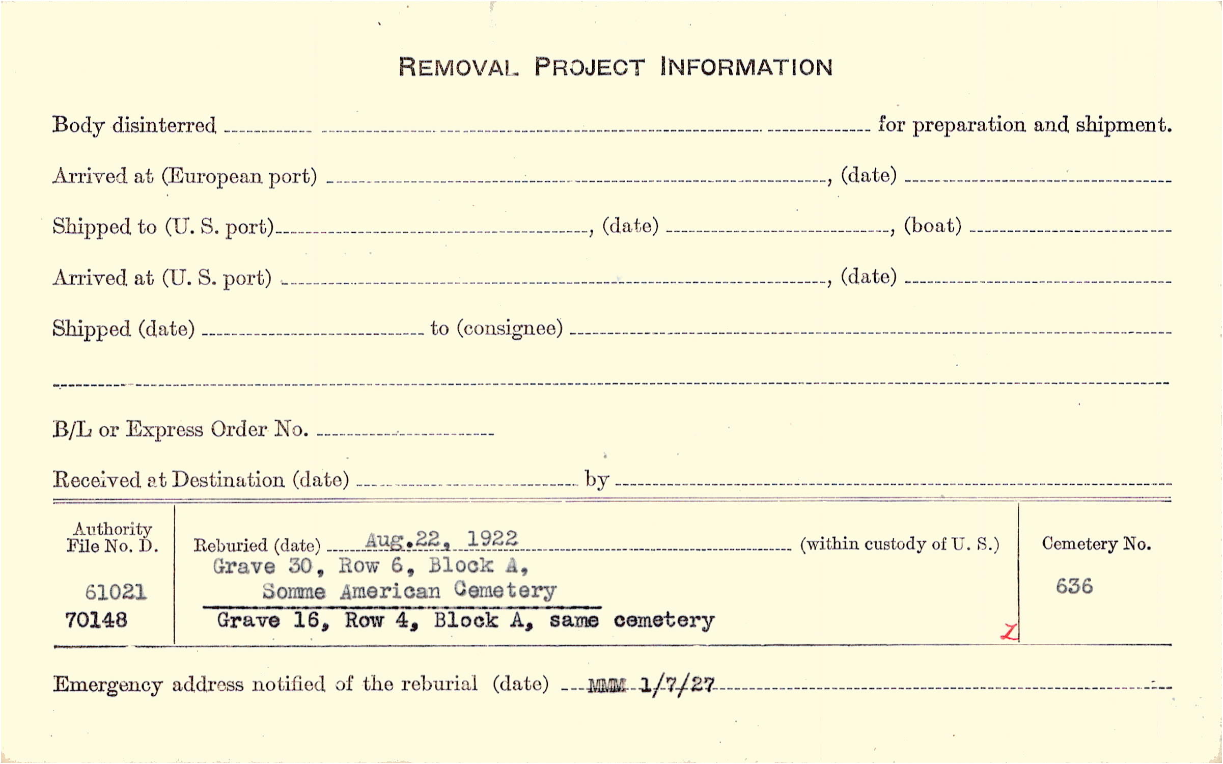 Prior Burial in Foreign Cemetery |