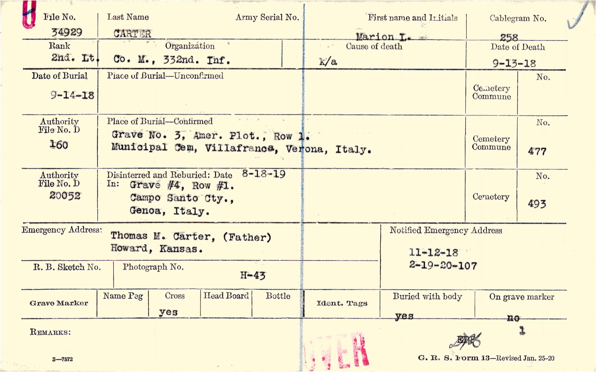 Grave 3, Amer. Plot, Row 1, Municipal Cem, Villafranca, Verona, Italy