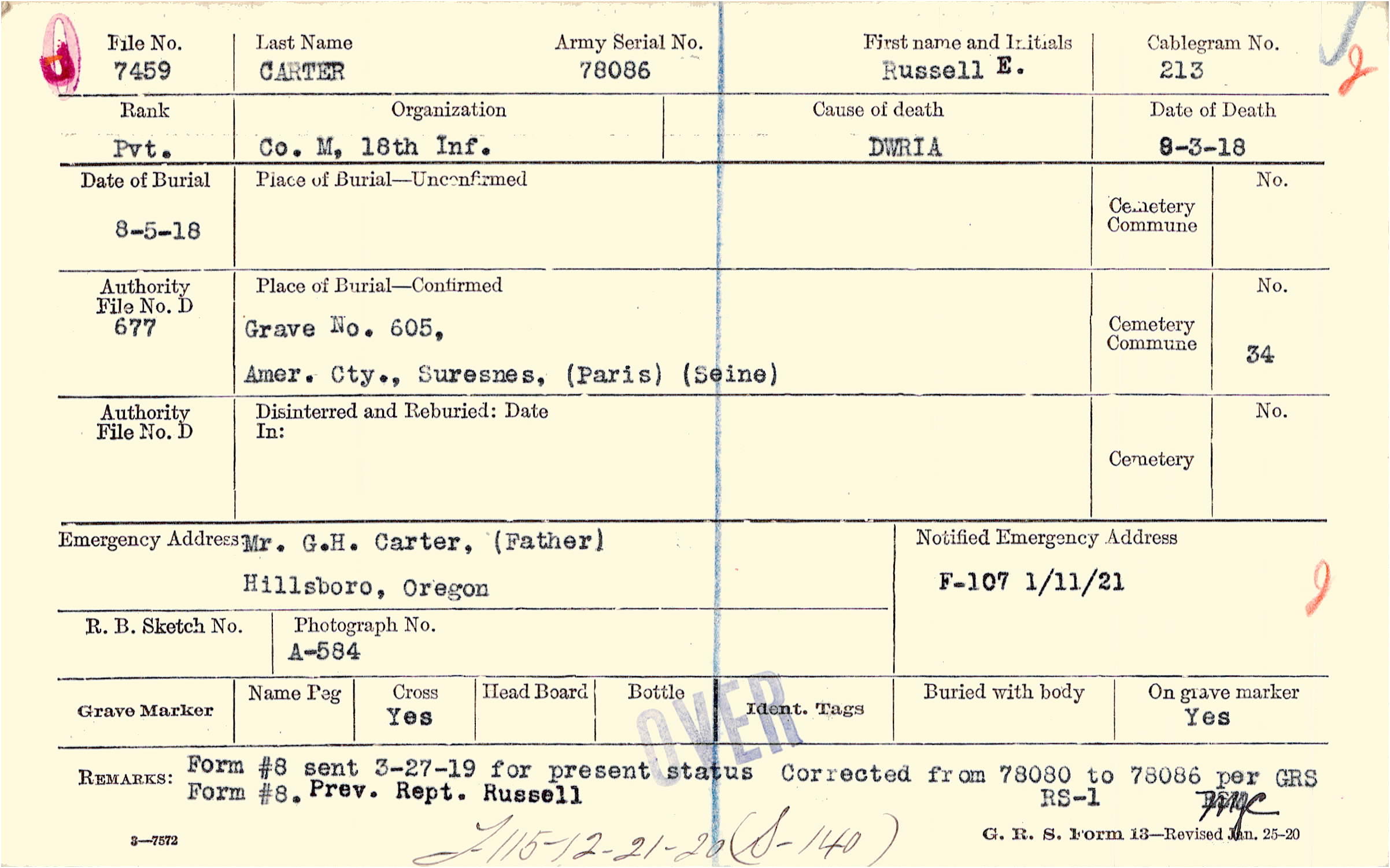 Form #8 sent 3-27-19 for present status. Corrected from 78080 to 78086 per GRS Form #8 Prev. Rept. Russell., F115 - 12-21-20 (S-140)