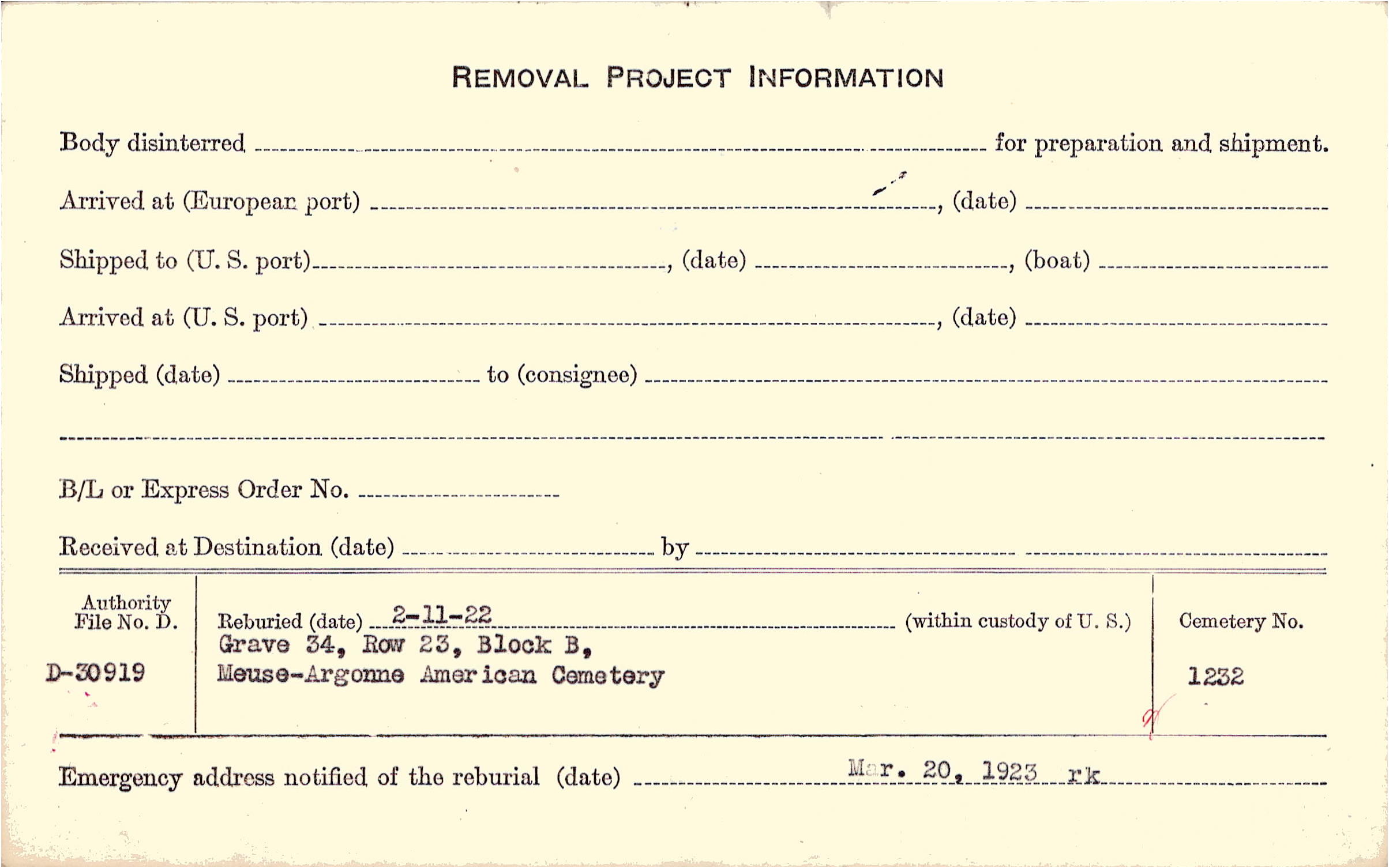 | Permanent Burial in Foreign Cemetery |