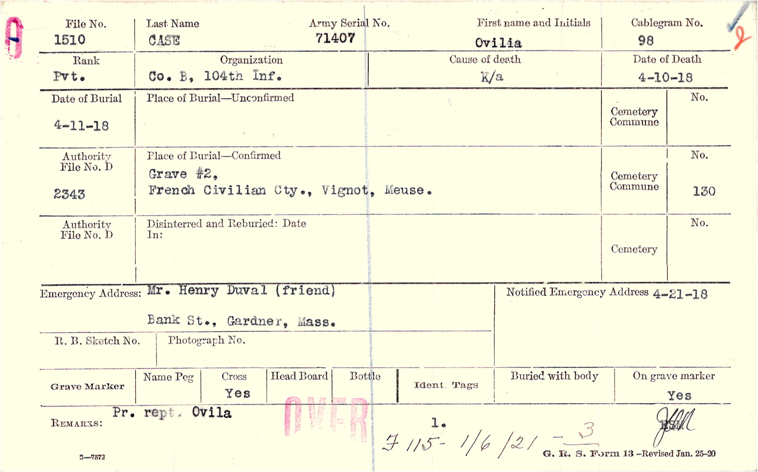 Grave #2, French Civilian Cty., Vignot, Meuse.