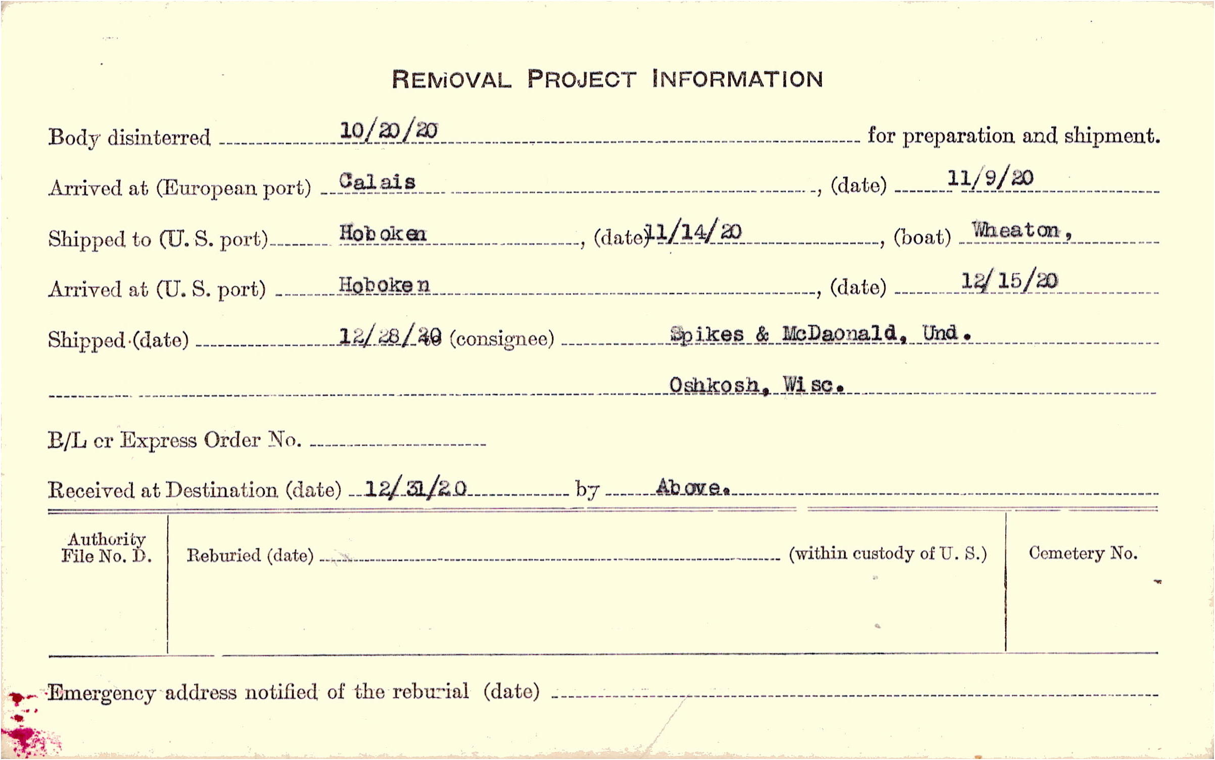 to Spikes & McDaonald, Und. Oshkosh, Wisc.