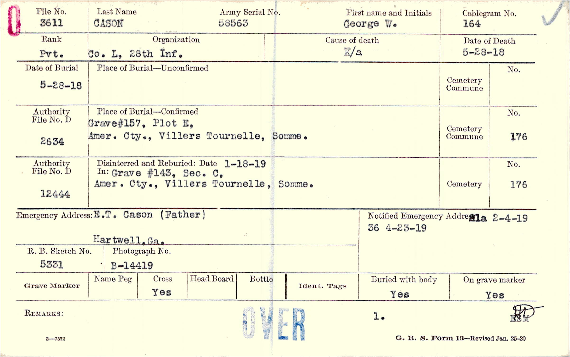 Grave #157, Plot E, Amer. Cty., Villers Tournelle, Somme.