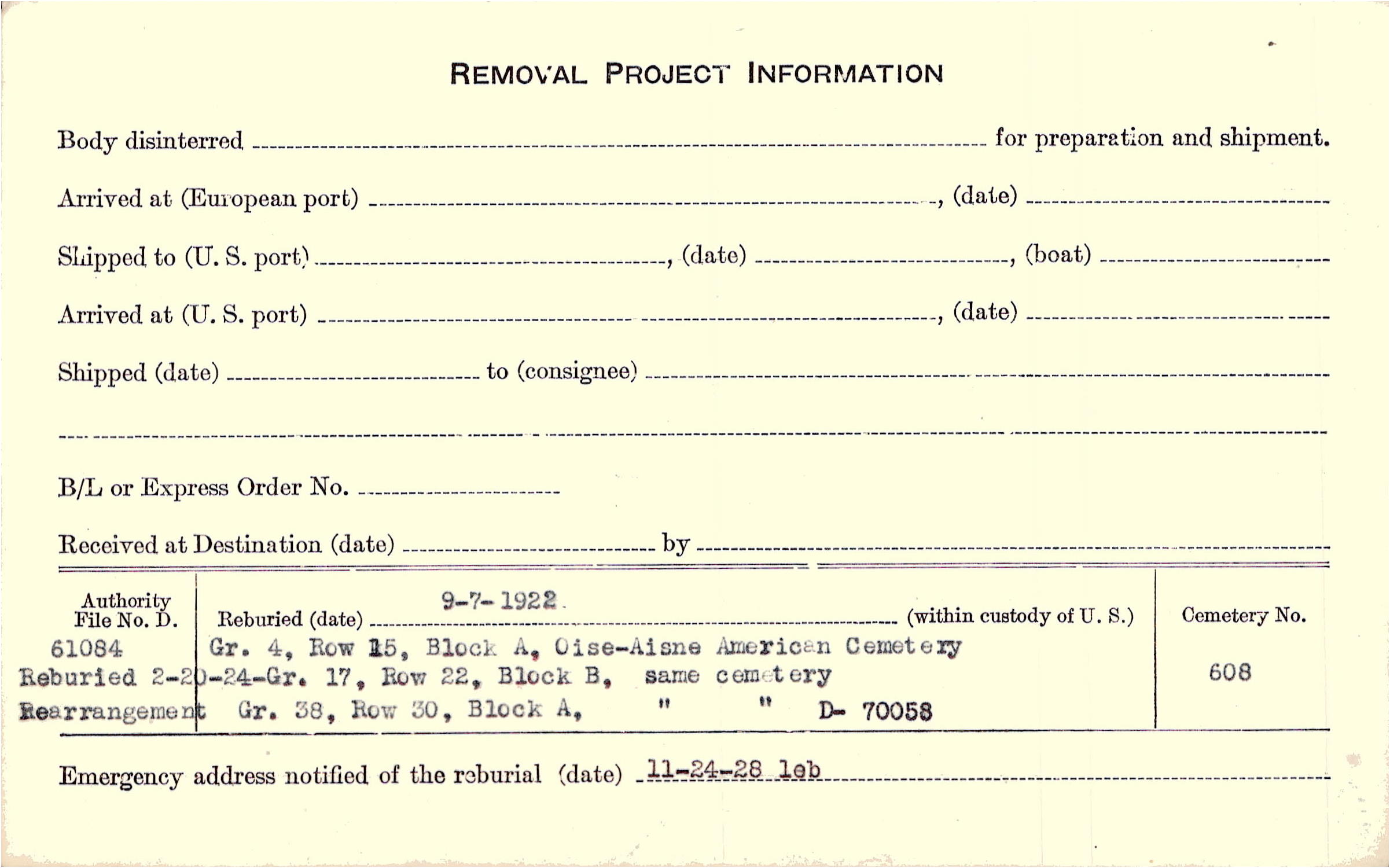 Prior Burial in Foreign Cemetery |
