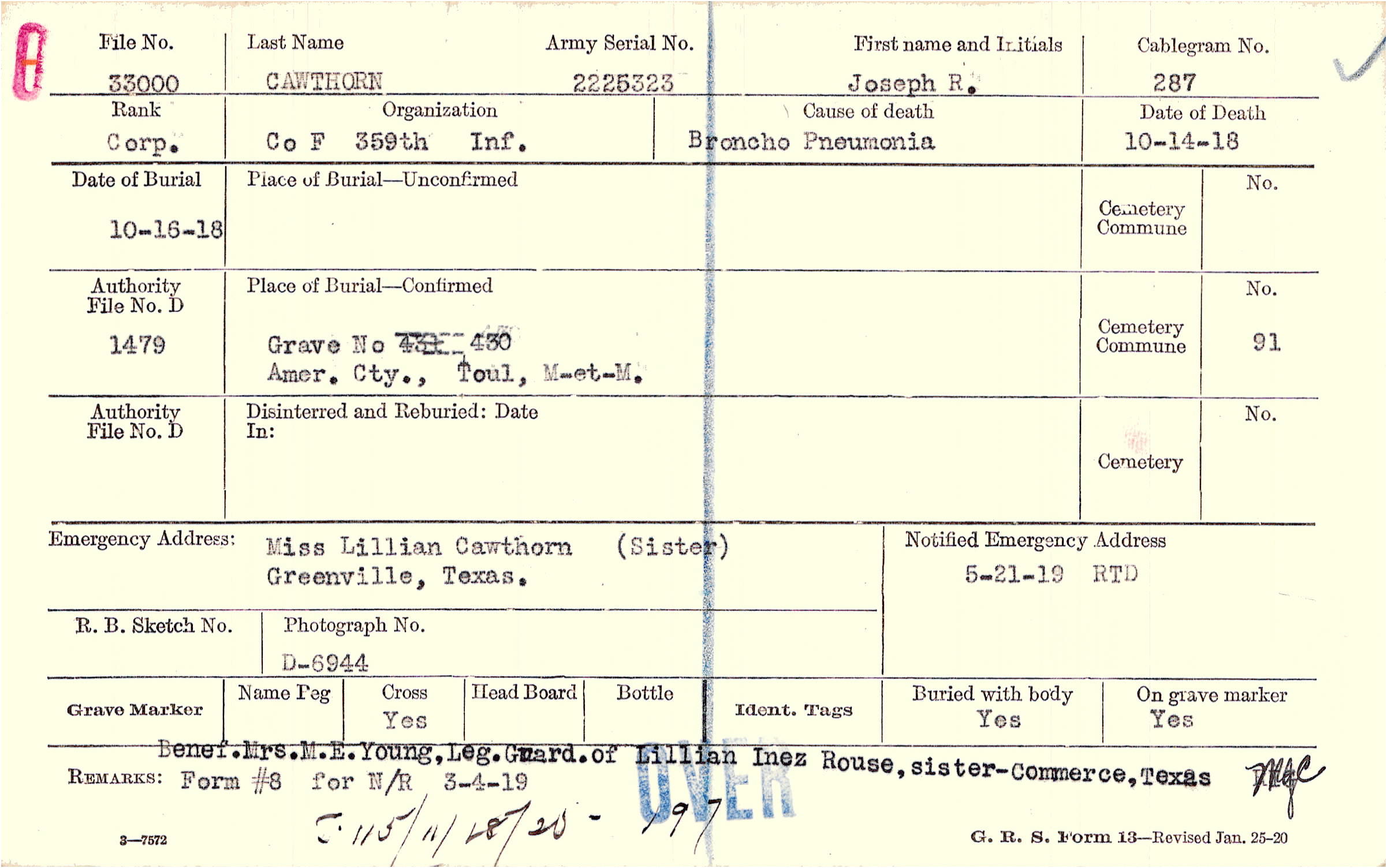 Grave No 430, Amer. Cty., Toul, M-et-M.