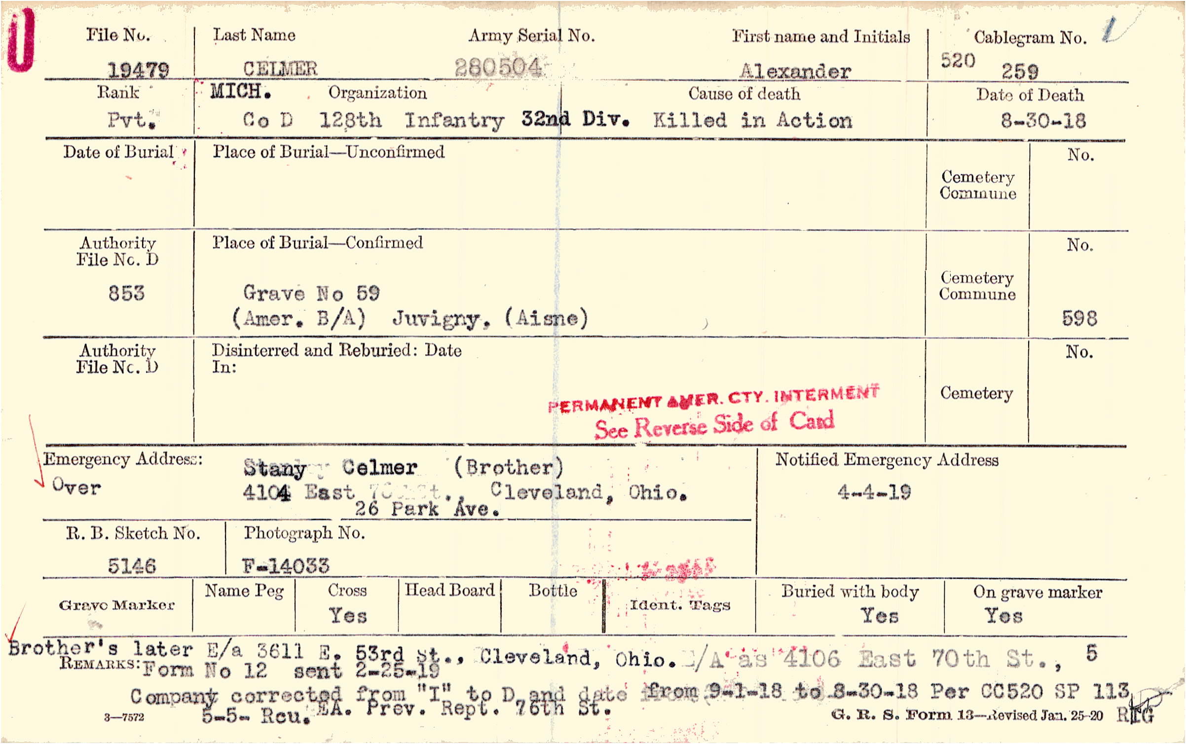 Stany Celmer (Brother), 4104 East 26 Park Ave. Cleveland, Ohio., Over