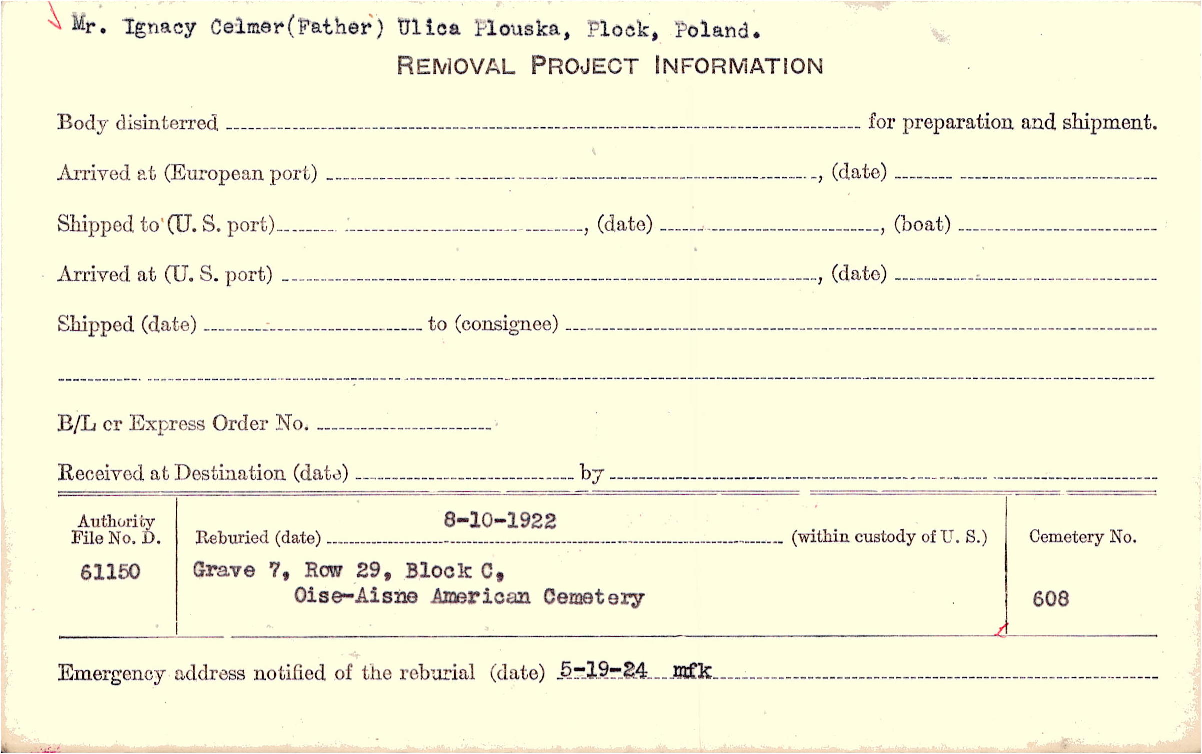 Mr. Ignacy Celmer (Father), Ulica Plouska, Plock, Poland |