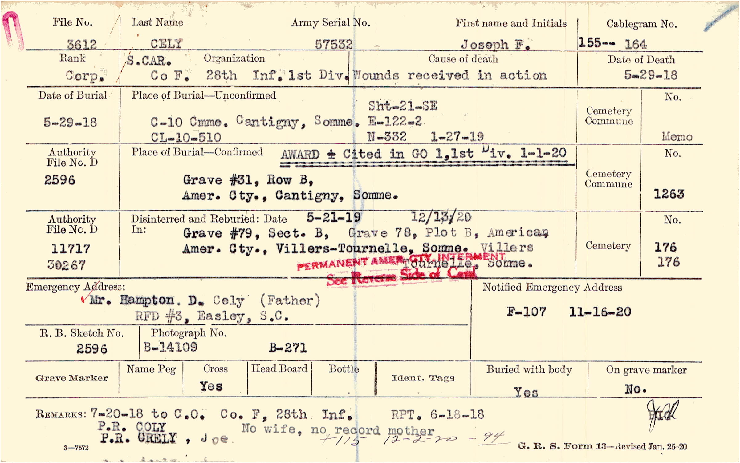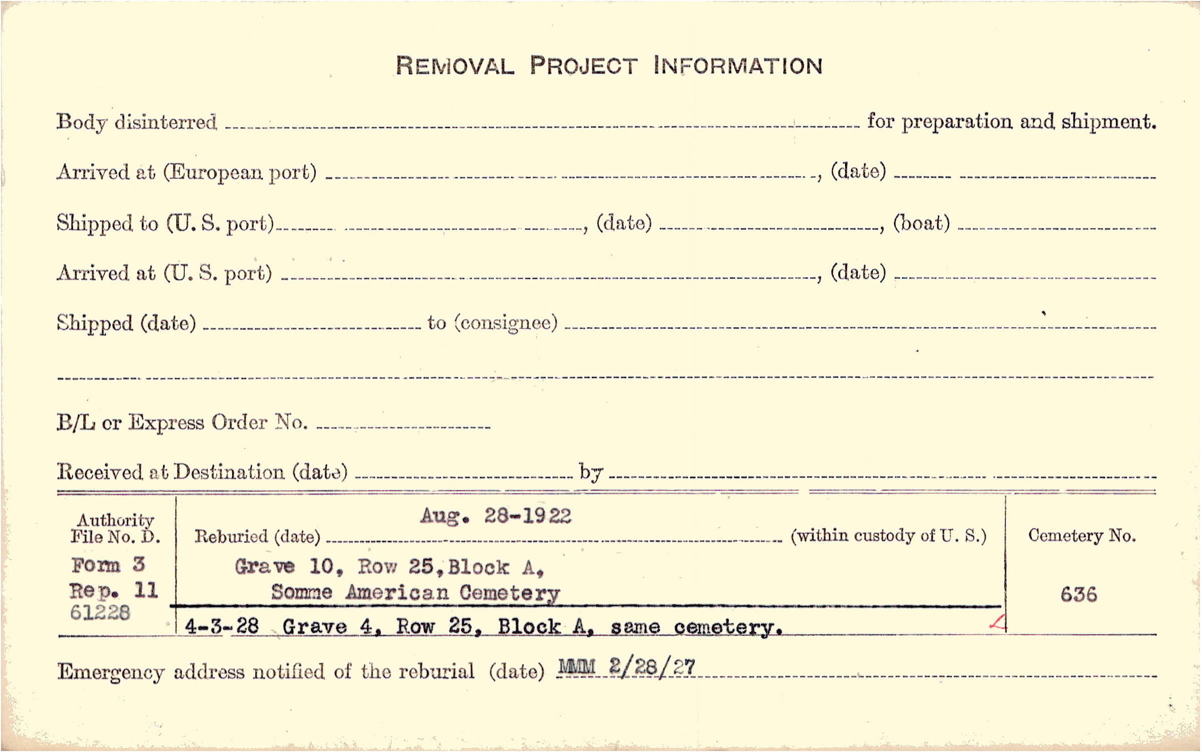 Prior Burial in Foreign Cemetery |