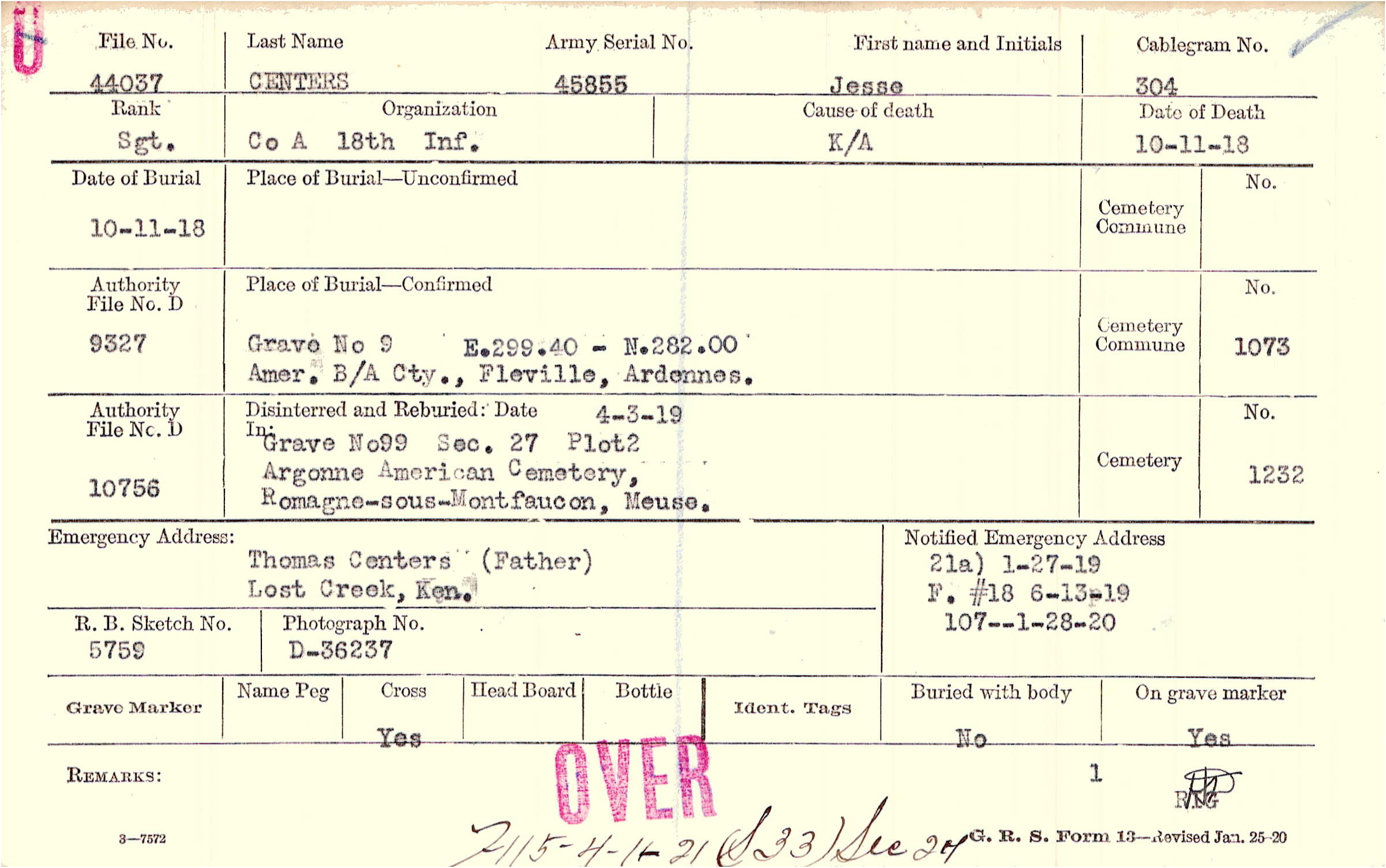 Form 21a: ) 1/27/1919, F #18 6/13/1919, Form 107: 1/28/1920
