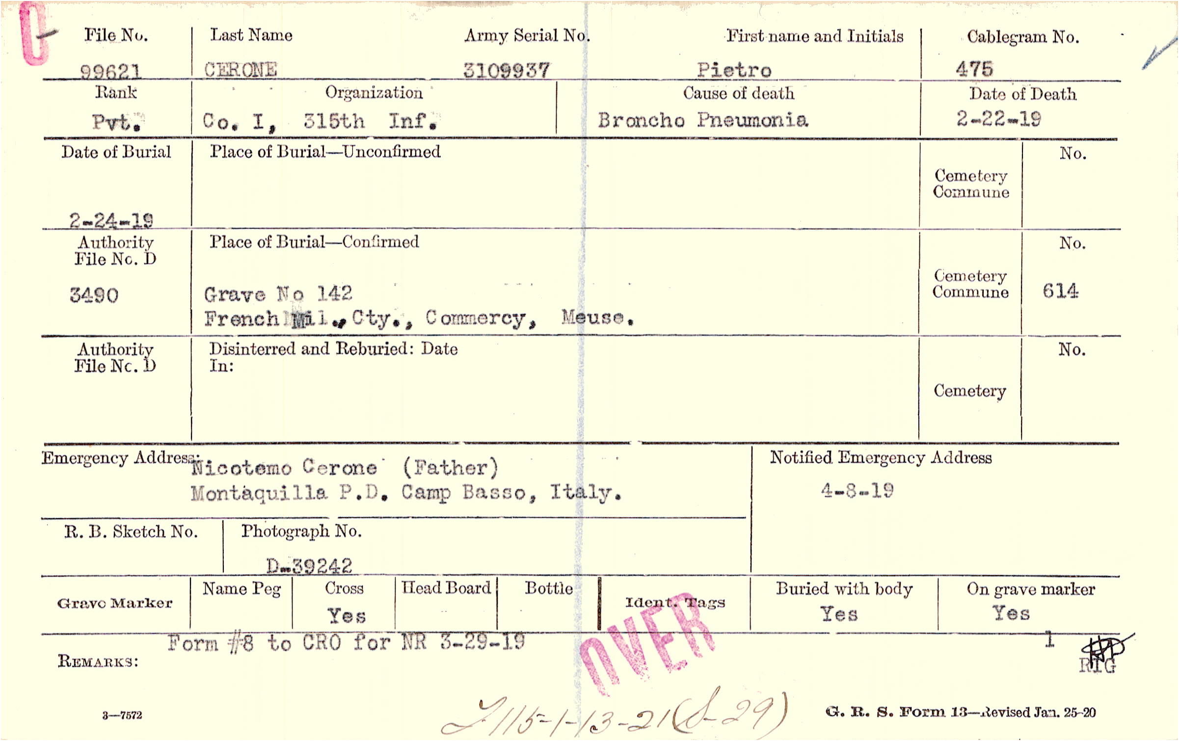 Grave 142, French Mil., Cty., Commercy, Meuse.