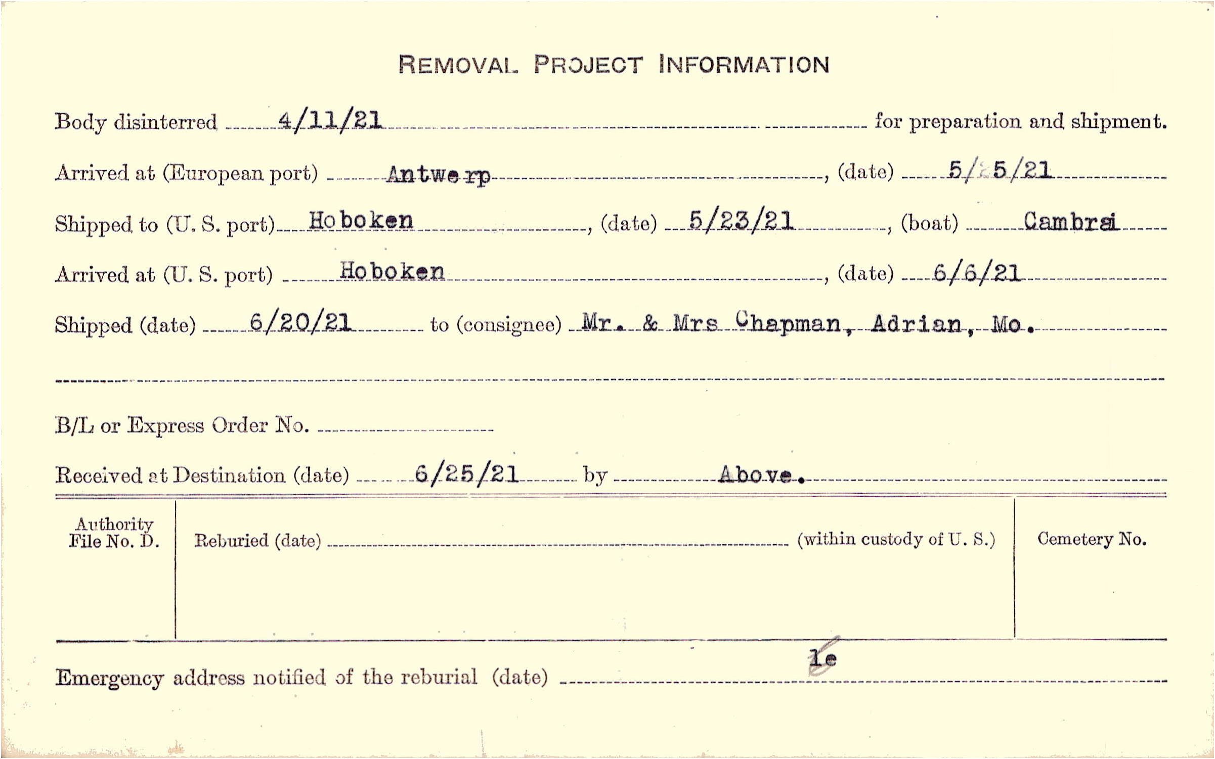 to Mr. & Mrs Chapman, Adrian, Mo.