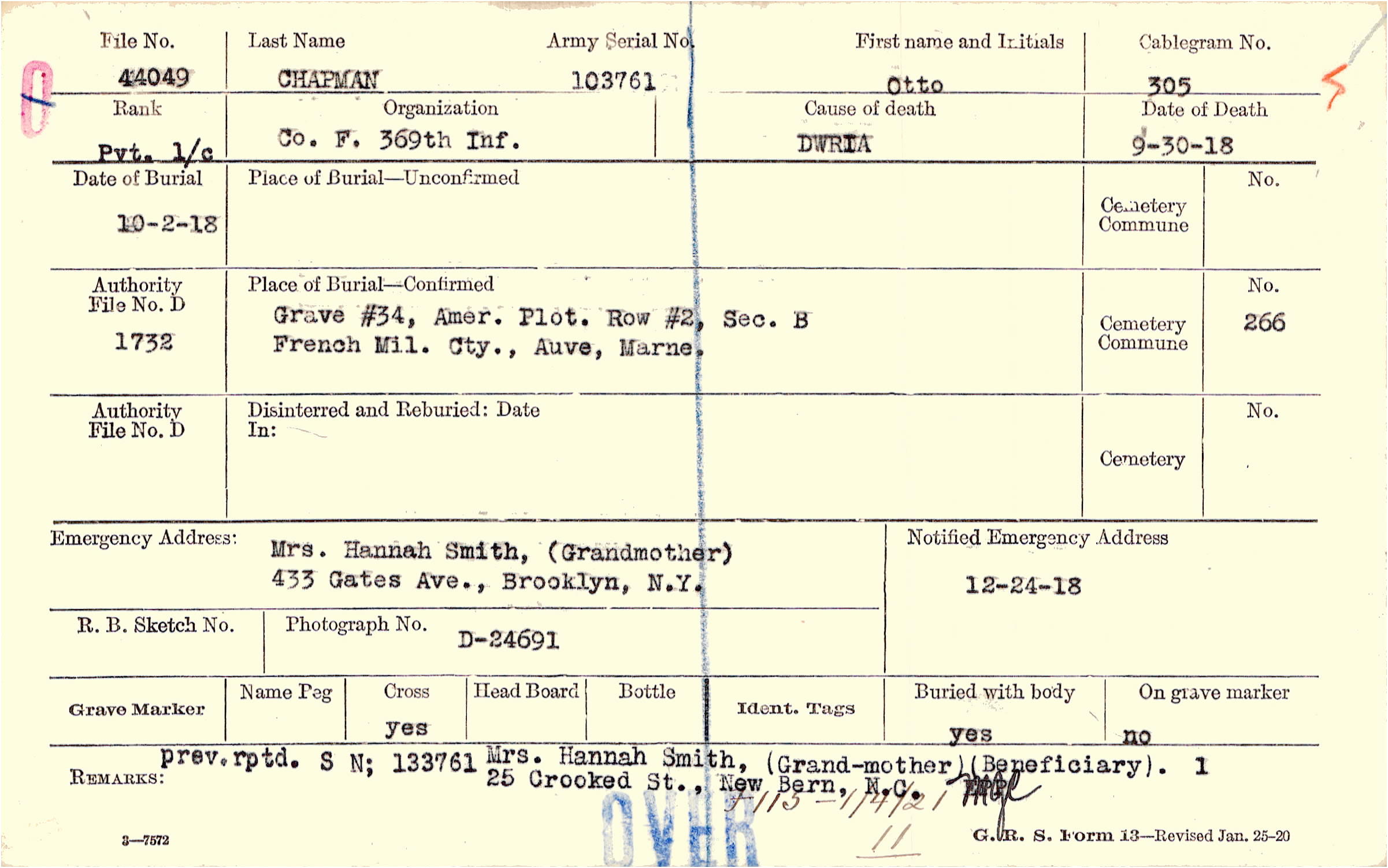 Mrs. Hannah Smith, (Grandmother), 433 Gates Ave., Brooklyn, N.Y.