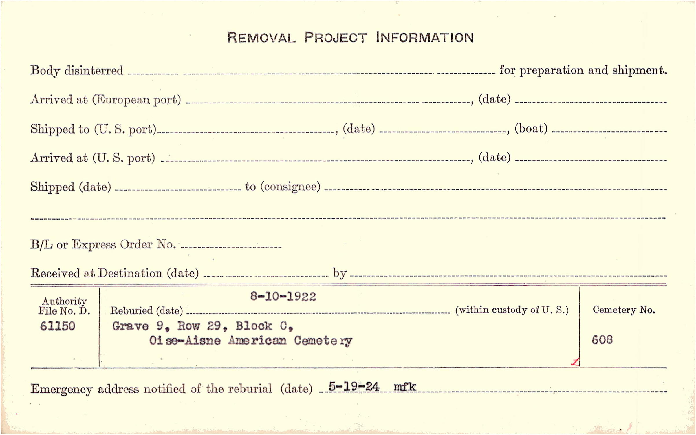 Grave 249, Amer. B/A Cty., Juvigny, (Aisne)