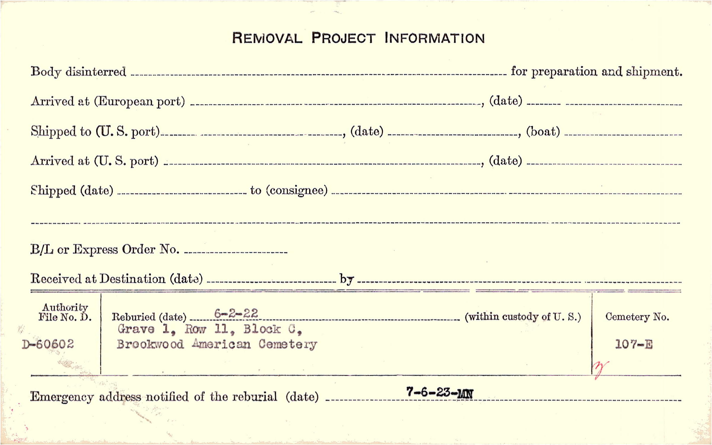 | Permanent Burial in Foreign Cemetery |