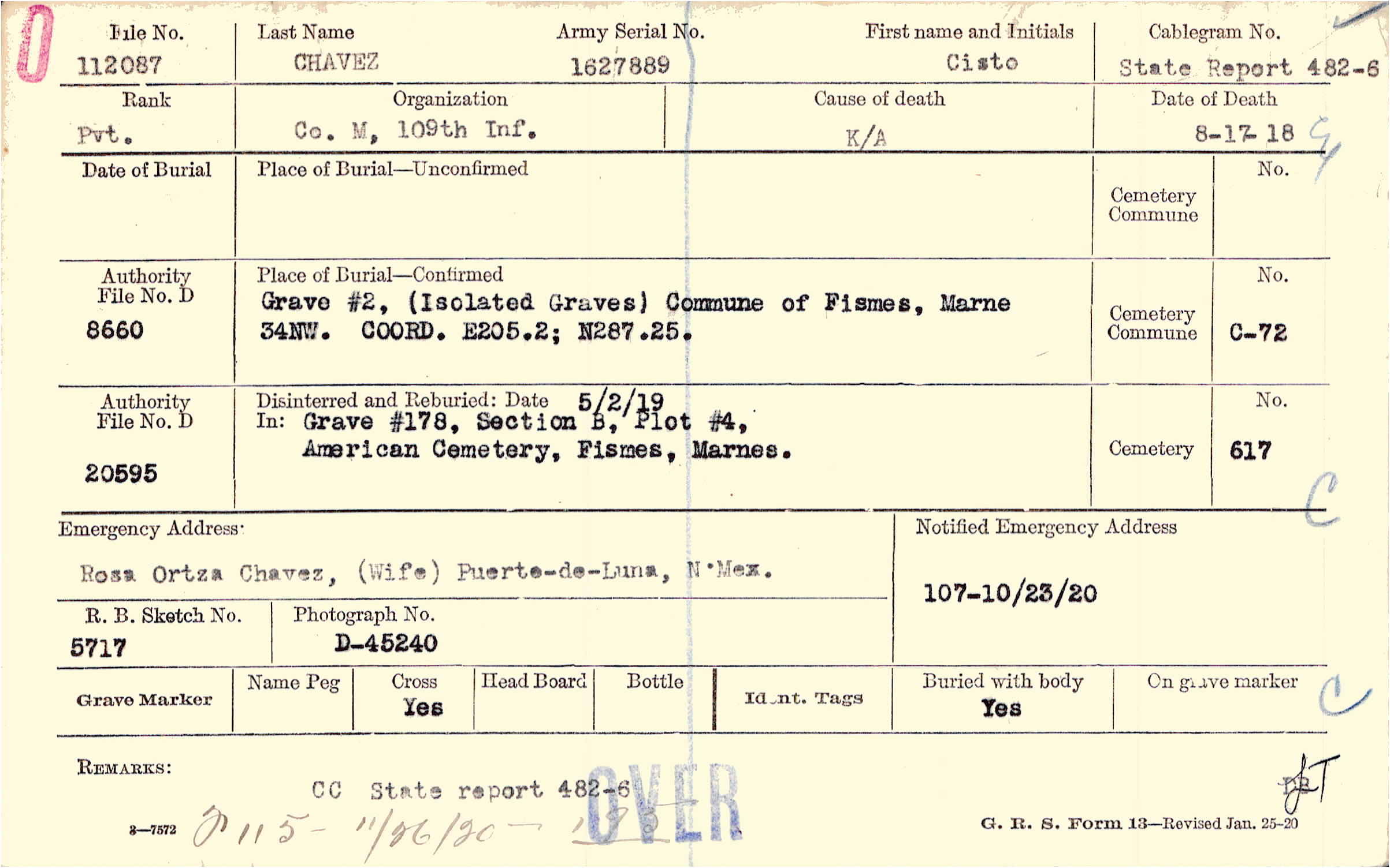 Grave 178, Section B, Plot 4, American B/A Cemetery, Fismes, Marne