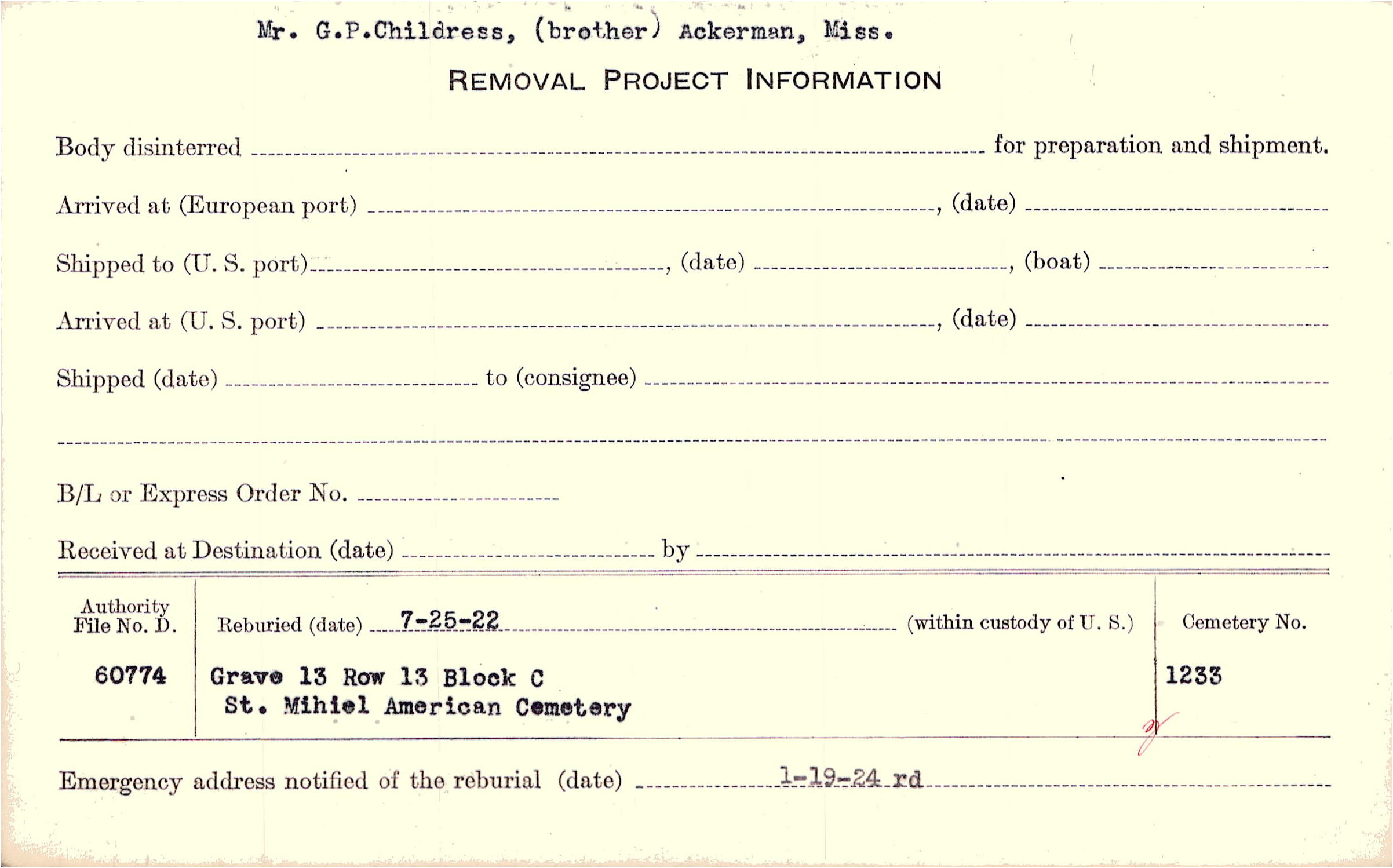 Mr. G.P. Childress, (brother), Ackerman, Miss. |