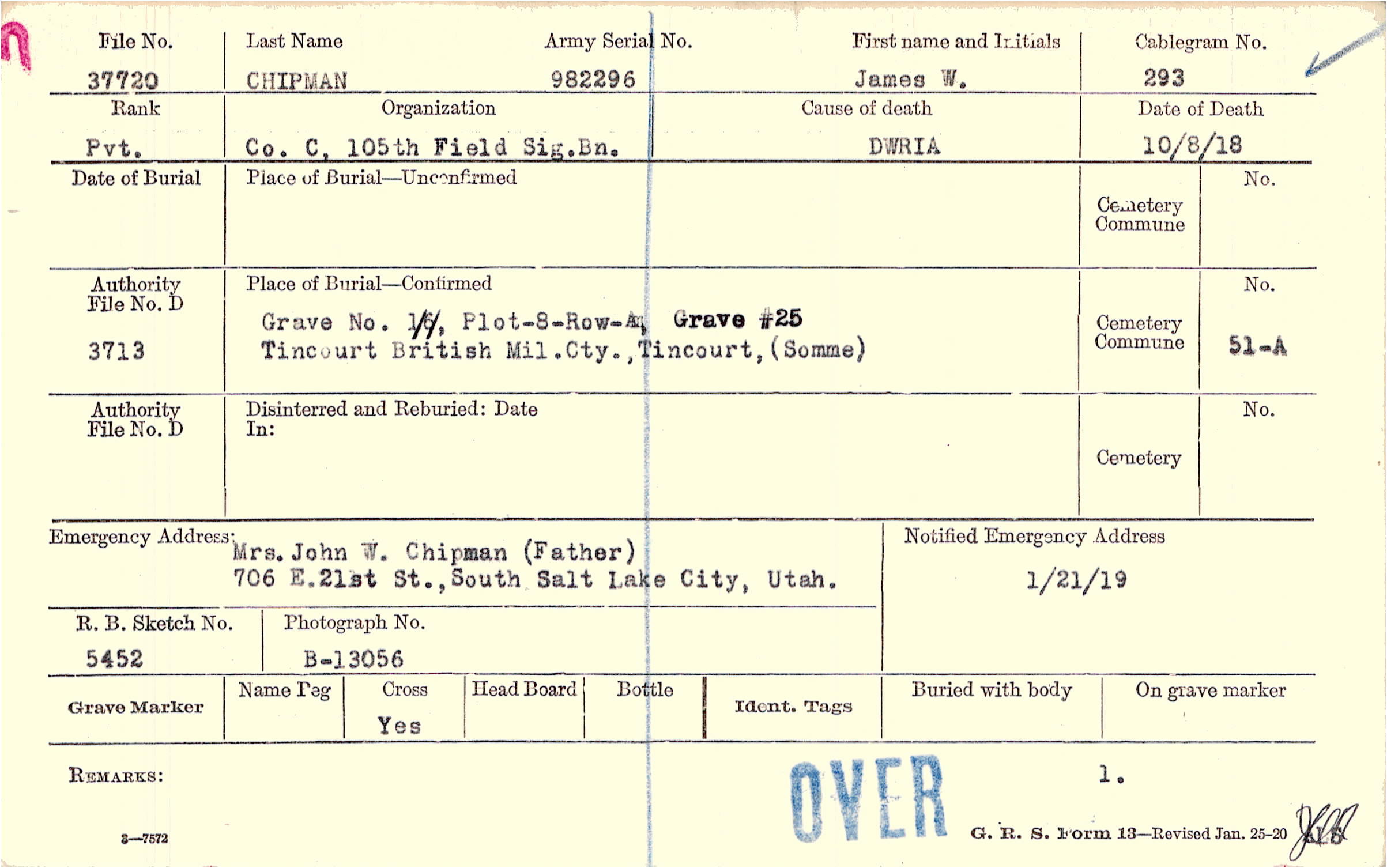 Mrs. John W. Chipman (Father), 706 E. 21st St., South Salt Lake City, Utah.