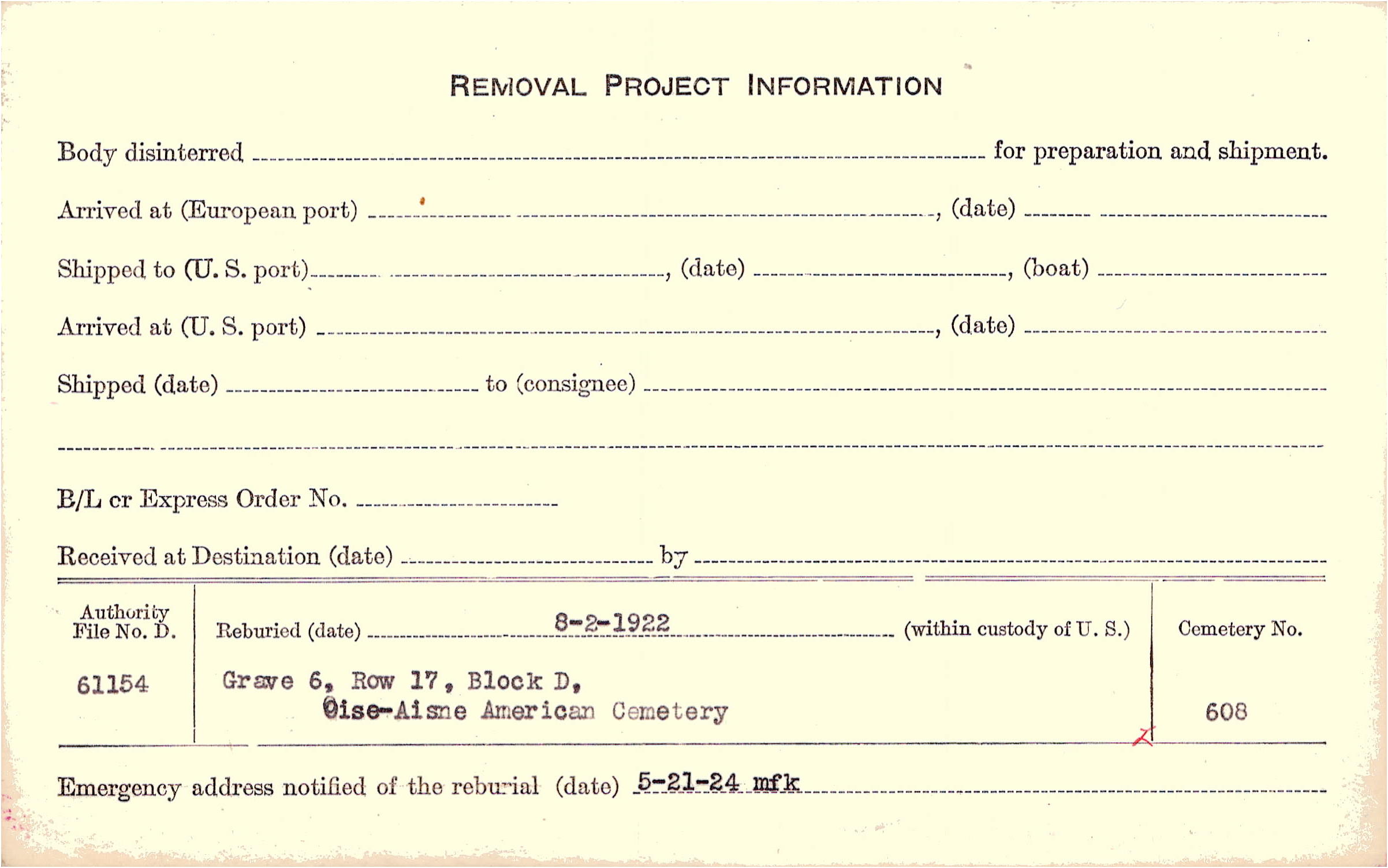 Grave 134, Amer. B/A Cty., Juvigny, Aisne.