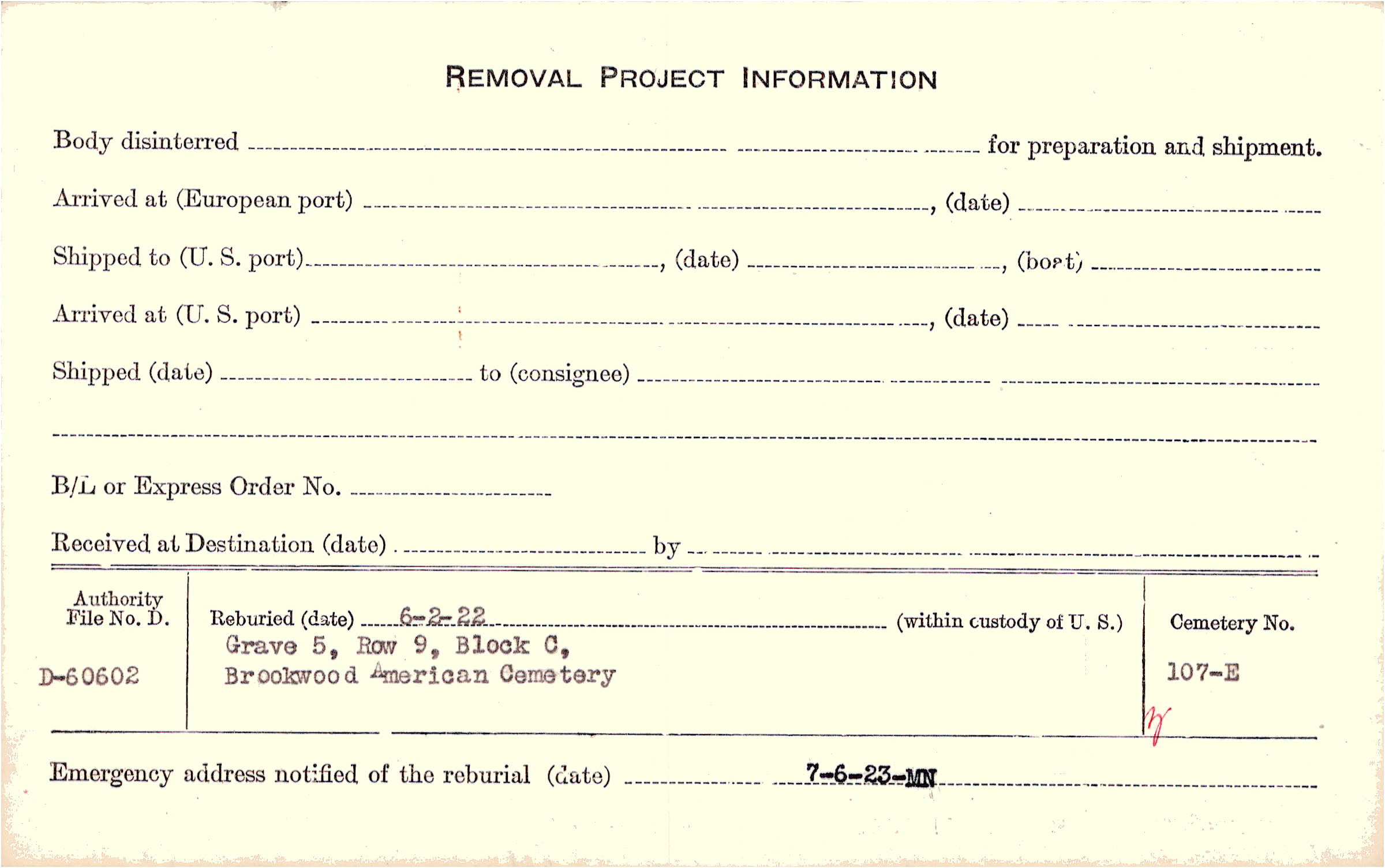 | Permanent Burial in Foreign Cemetery |