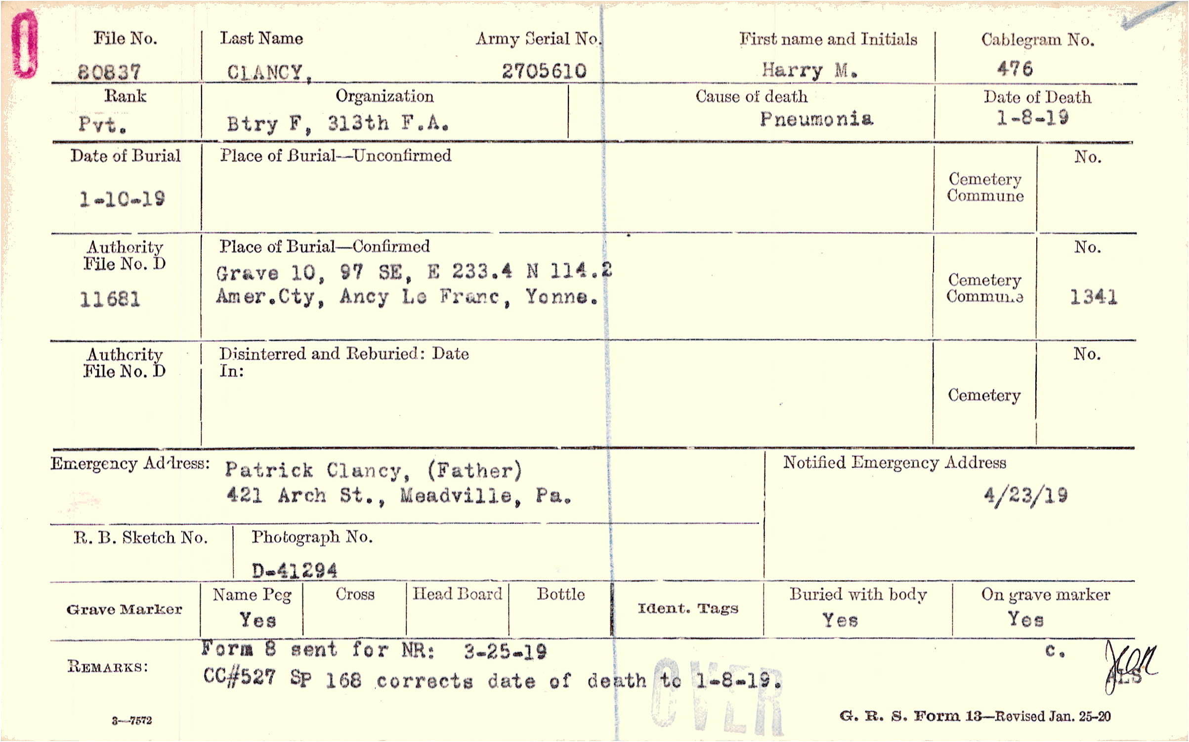 Grave 10, 97 SE, Amer. Cty, Ancy Le Franc, Yonne