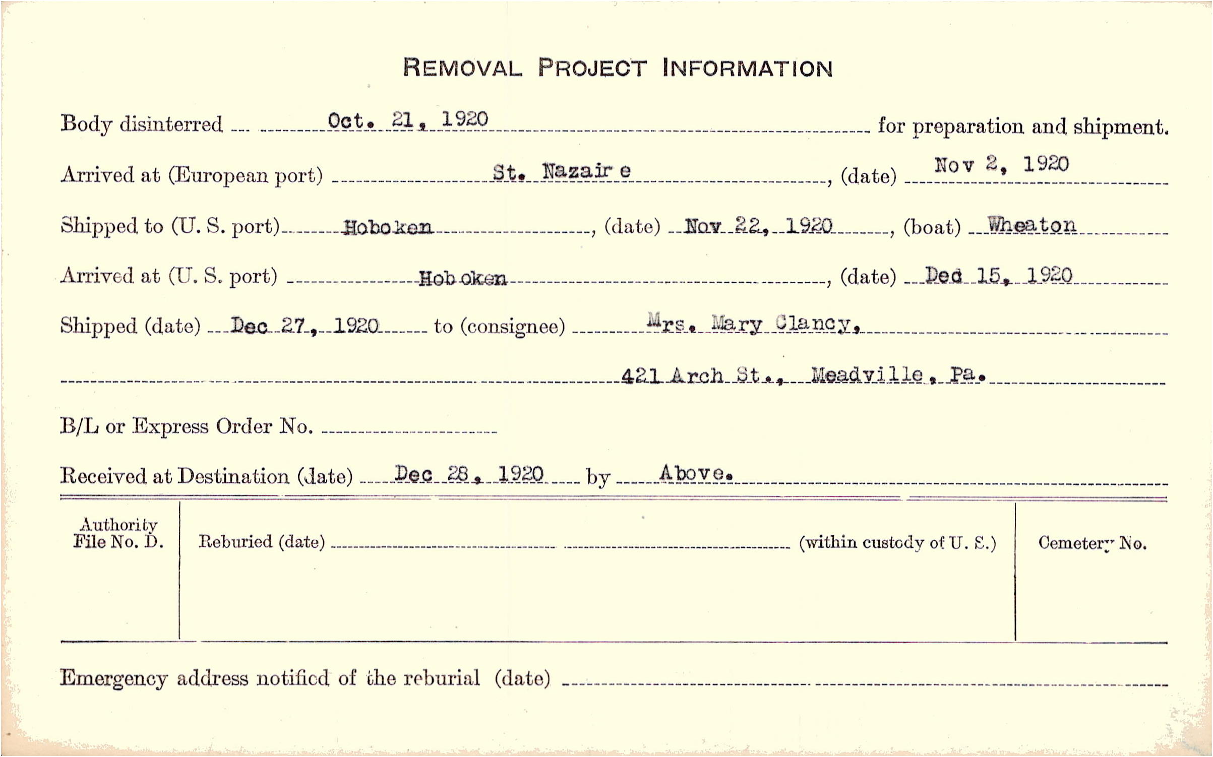 Patrick Clancy, (Father), 421 Arch St . , Meadville, Pa.