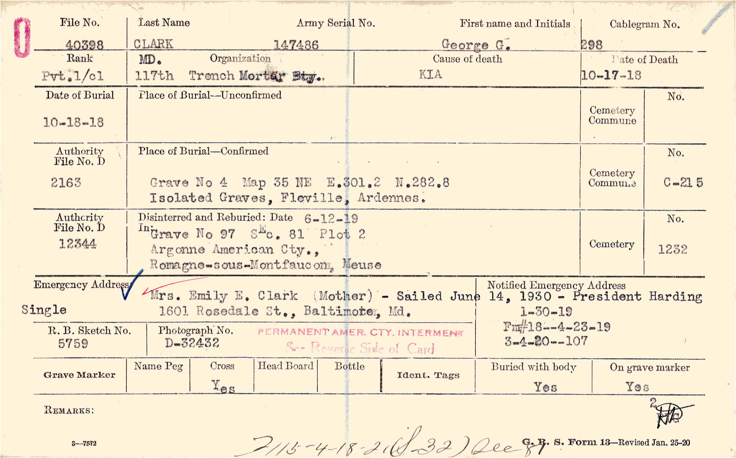 1/30/1919, Fm#18 4/23/1919, Form 107: 3/4/1920