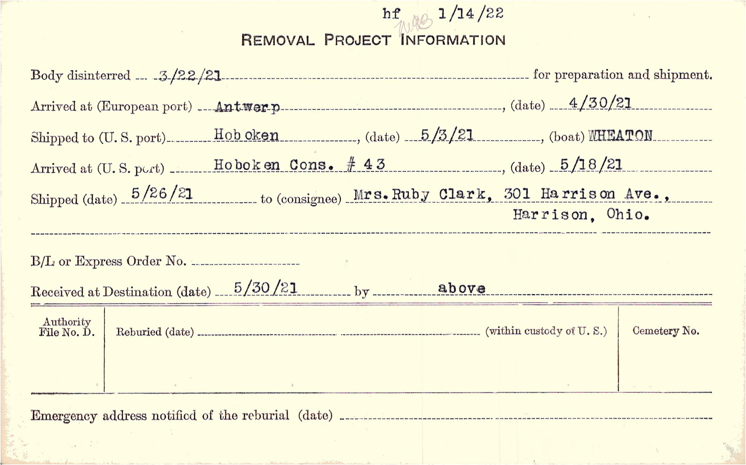 to Mrs. Ruby Clark, 301 Harrison Ave., Harrison, Ohio.