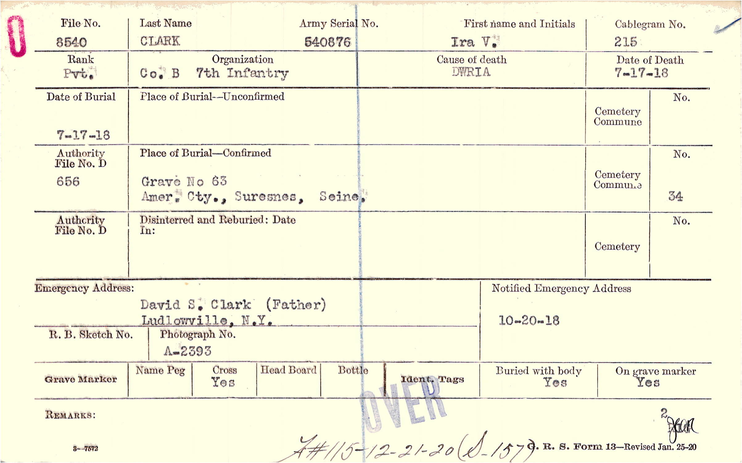 Grave 63, Amer. Cty., Suresnes, Seine.