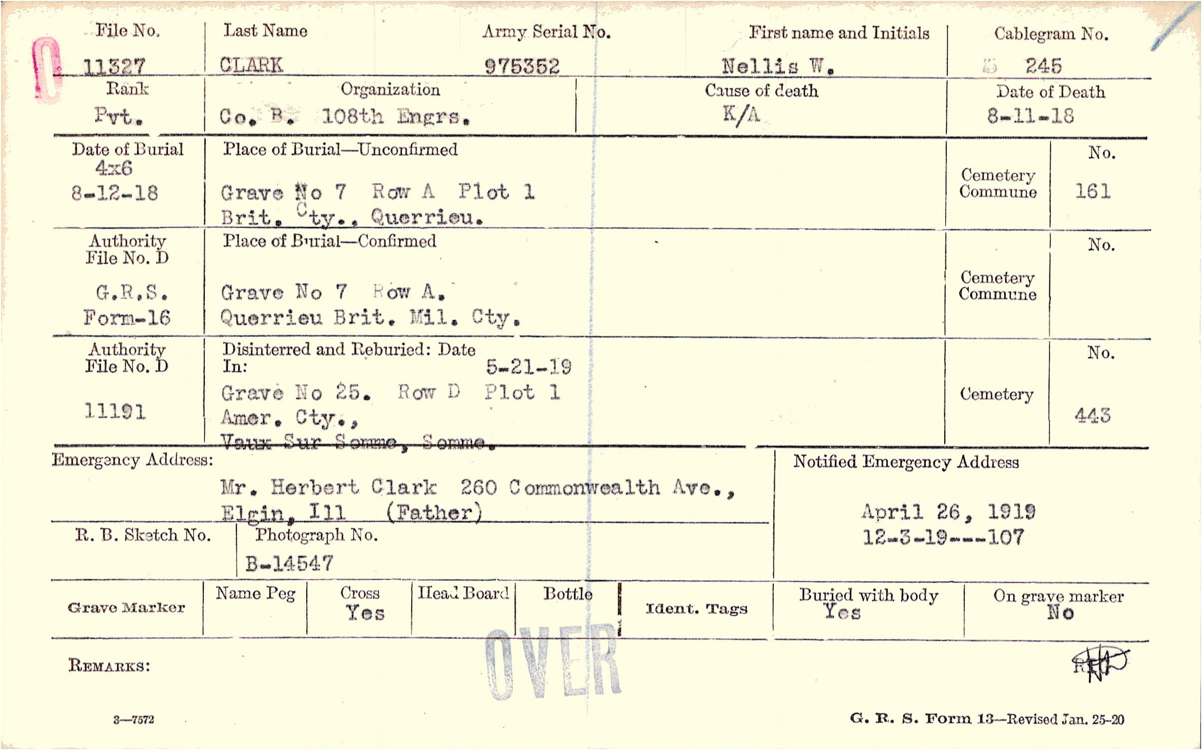 Mr. Herbert Clark (Father), 260 Commonwealth Ave., Elgin, Ill.