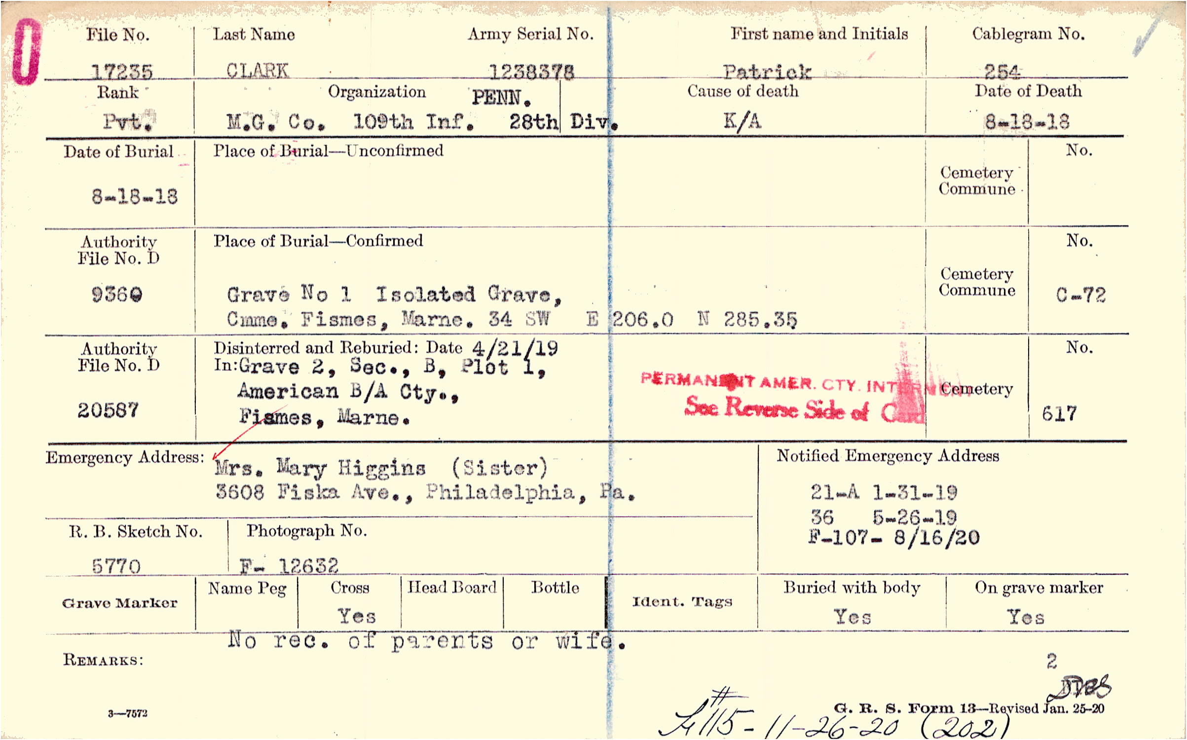 Mrs. Mary Higgins (Sister), 3608 Fiska Ave., Philadelphia, Pa.