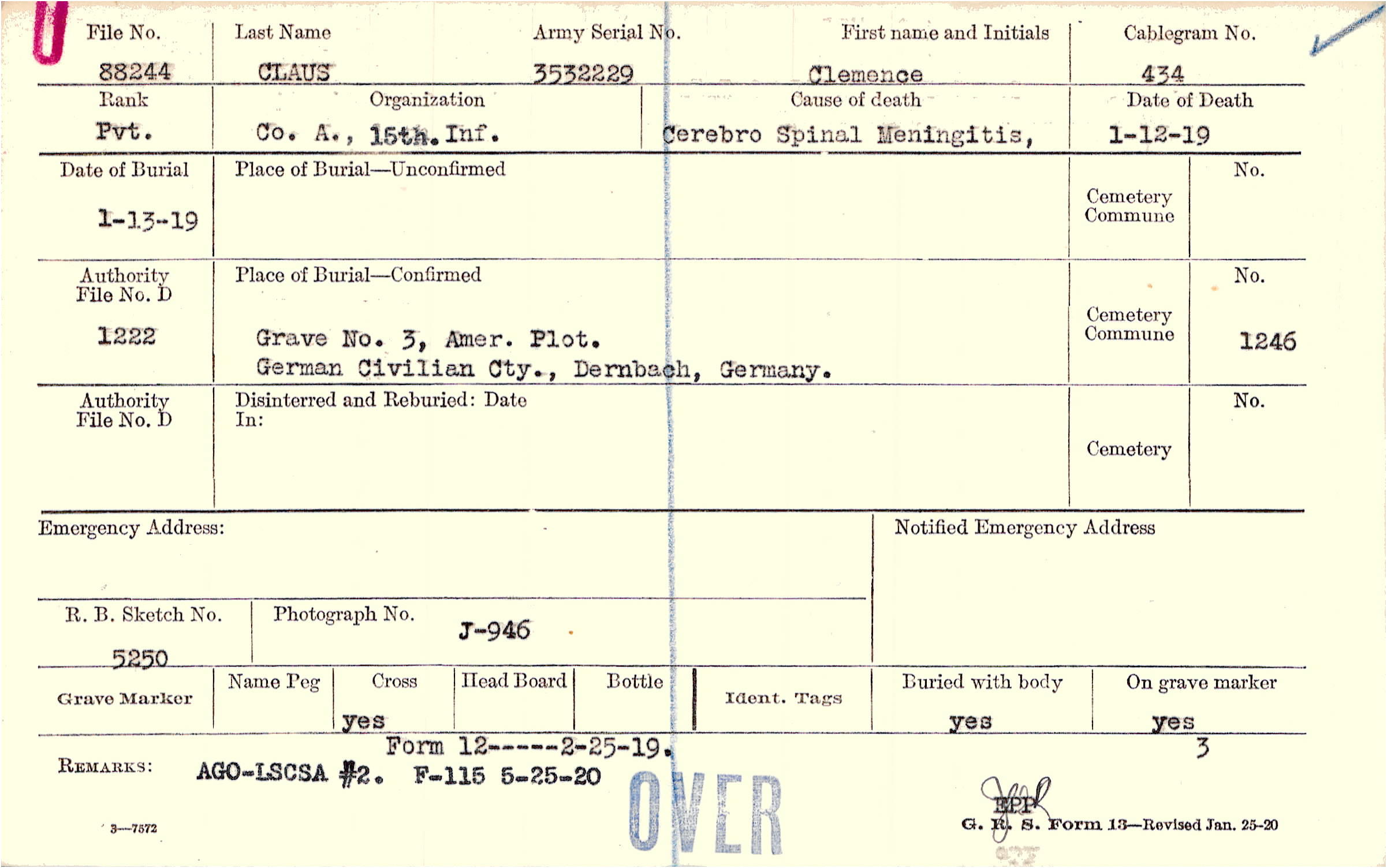 Grave 3, Amer. Plot, German Civilian Cty., Dernbach, Germany.