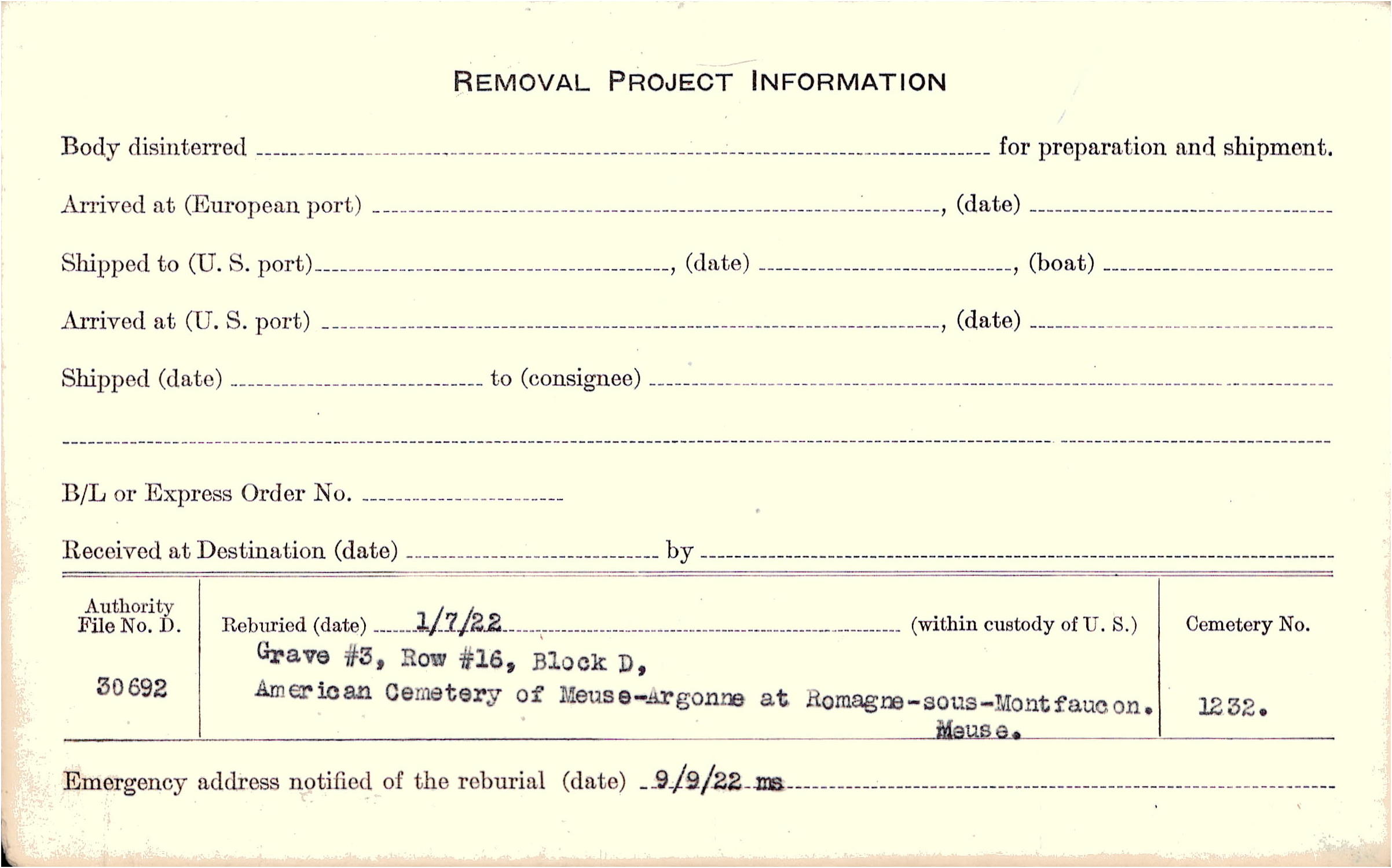 | Reburied (date): |