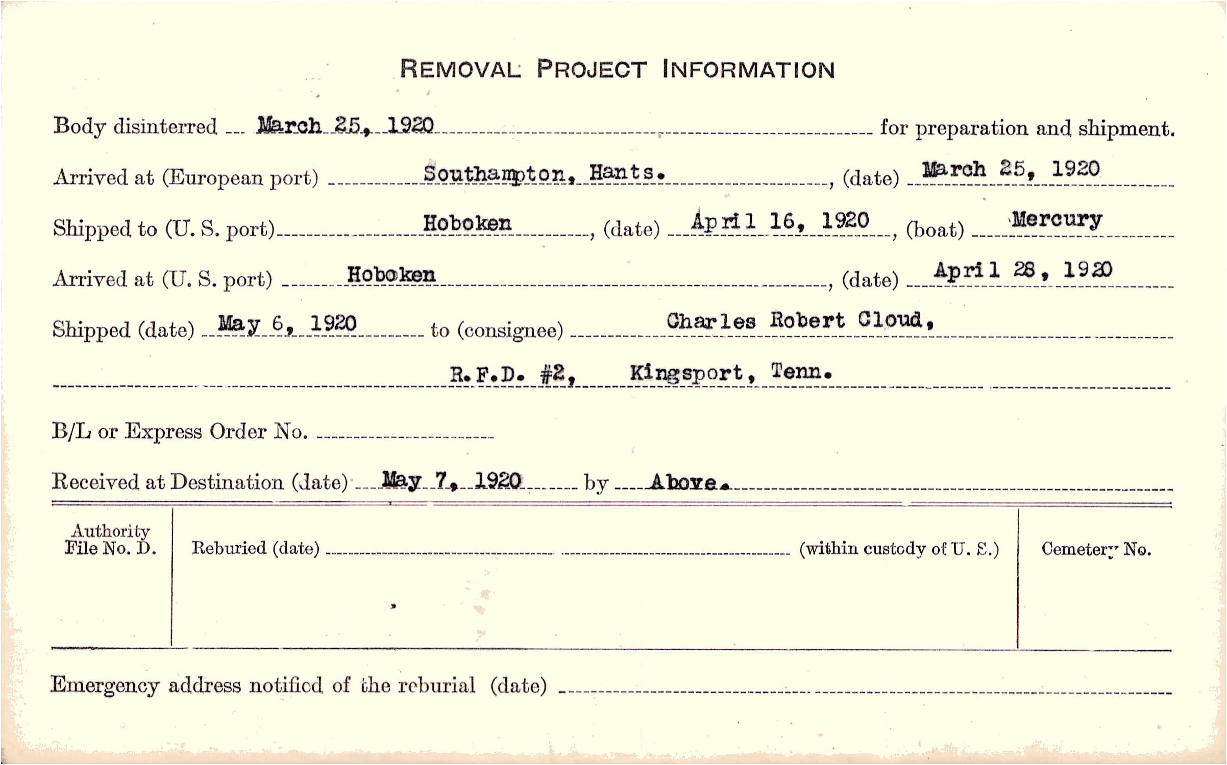 to Charles Robert Cloud, R.F.D. #2, Kingsport, Tenn.