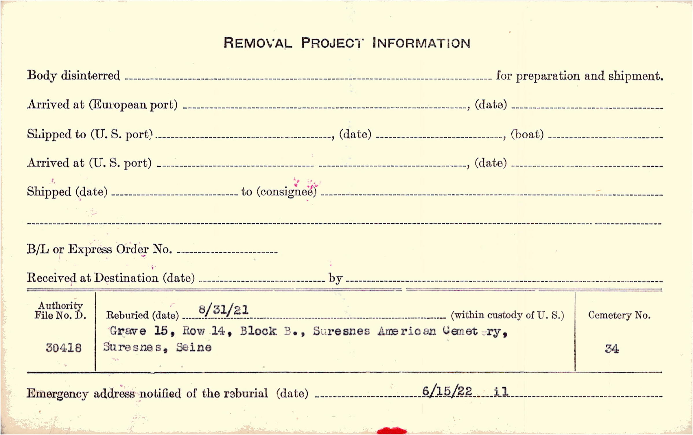 Grave #291, Amer. Cty., Suresnes, Seine.