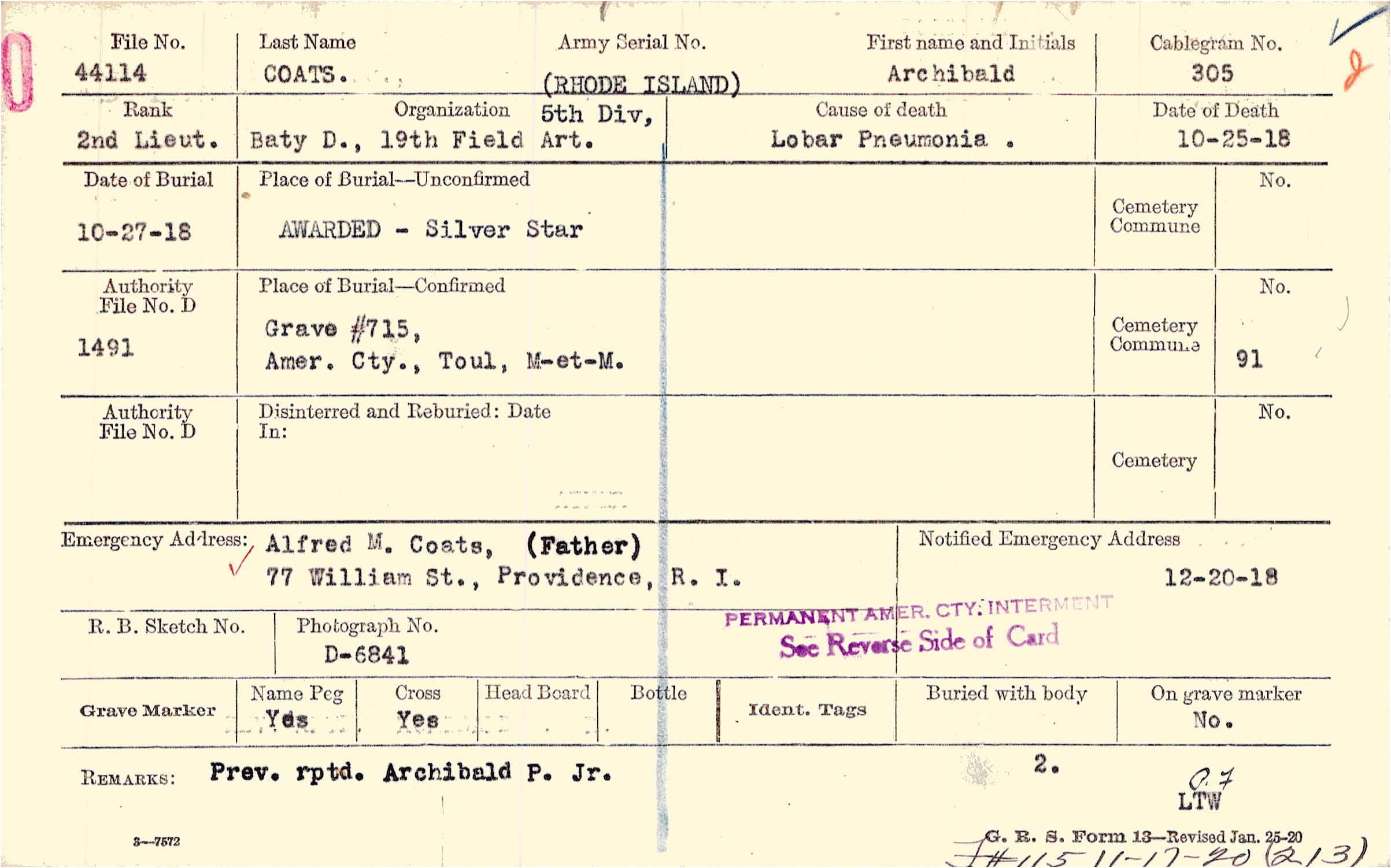 Grave #715, ,Amer. Cty., Toul, M-et-M.
