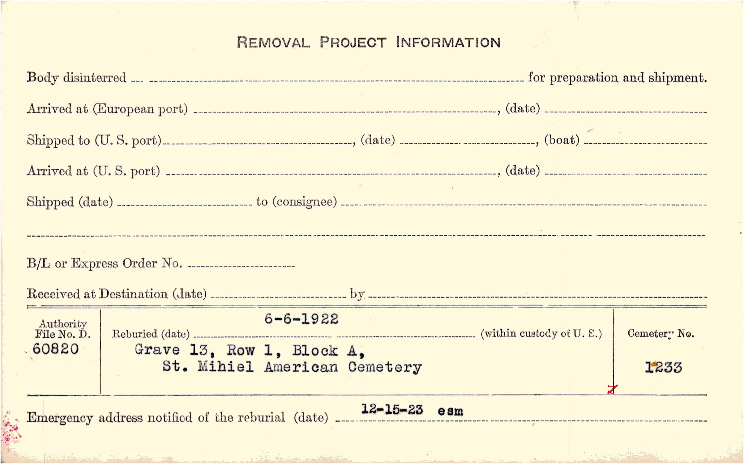 | Permanent Burial in Foreign Cemetery |