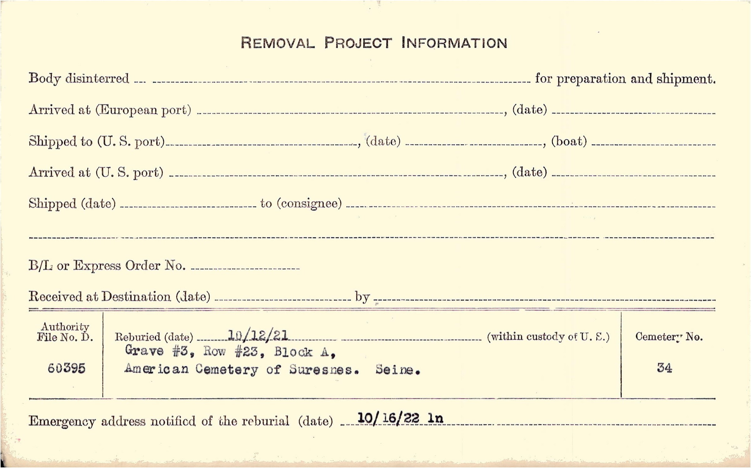 | Permanent Burial in Foreign Cemetery |
