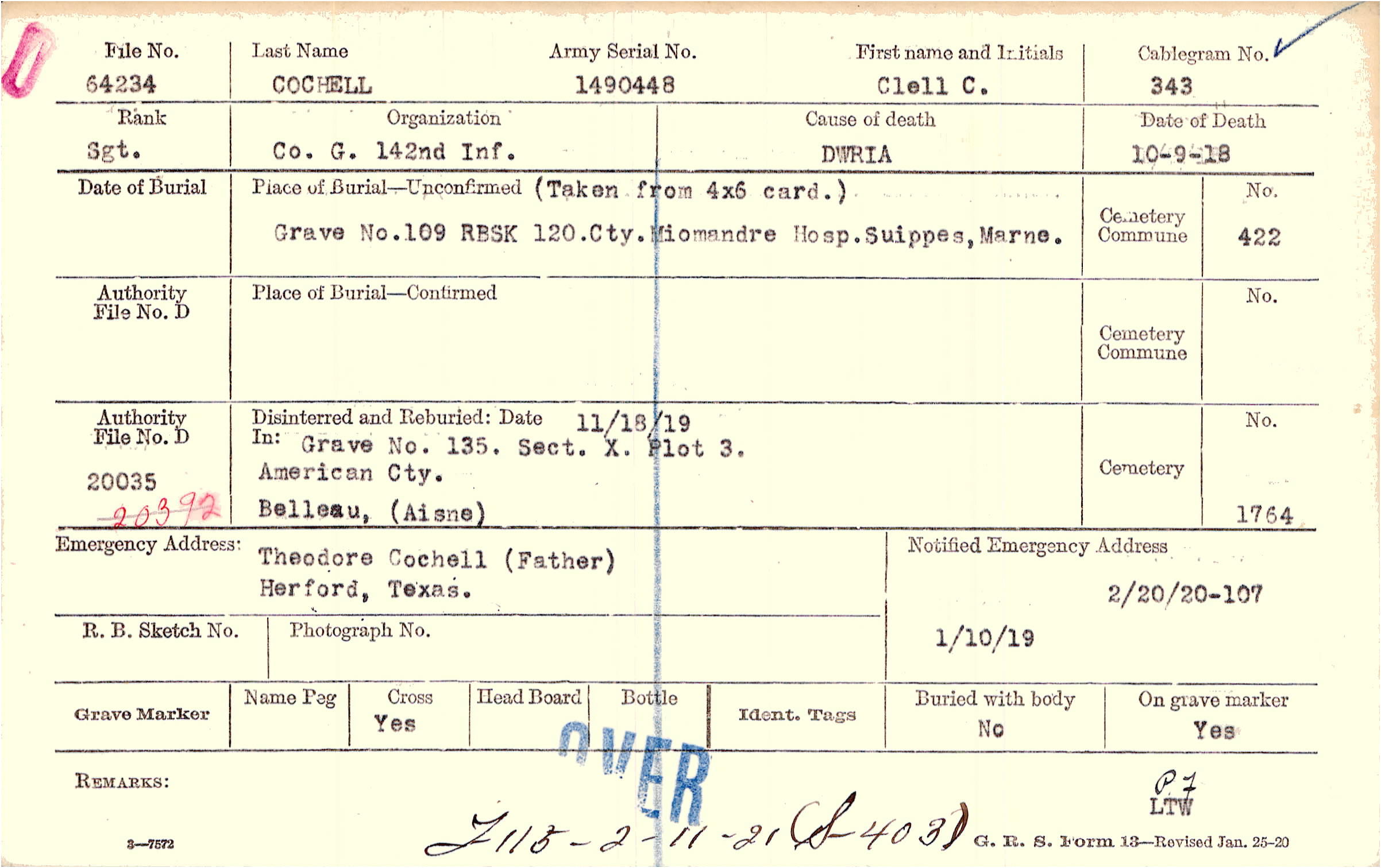Grave No.109, RBSK 120, Cty., Miomandre Hosp., Suippes, Marne.