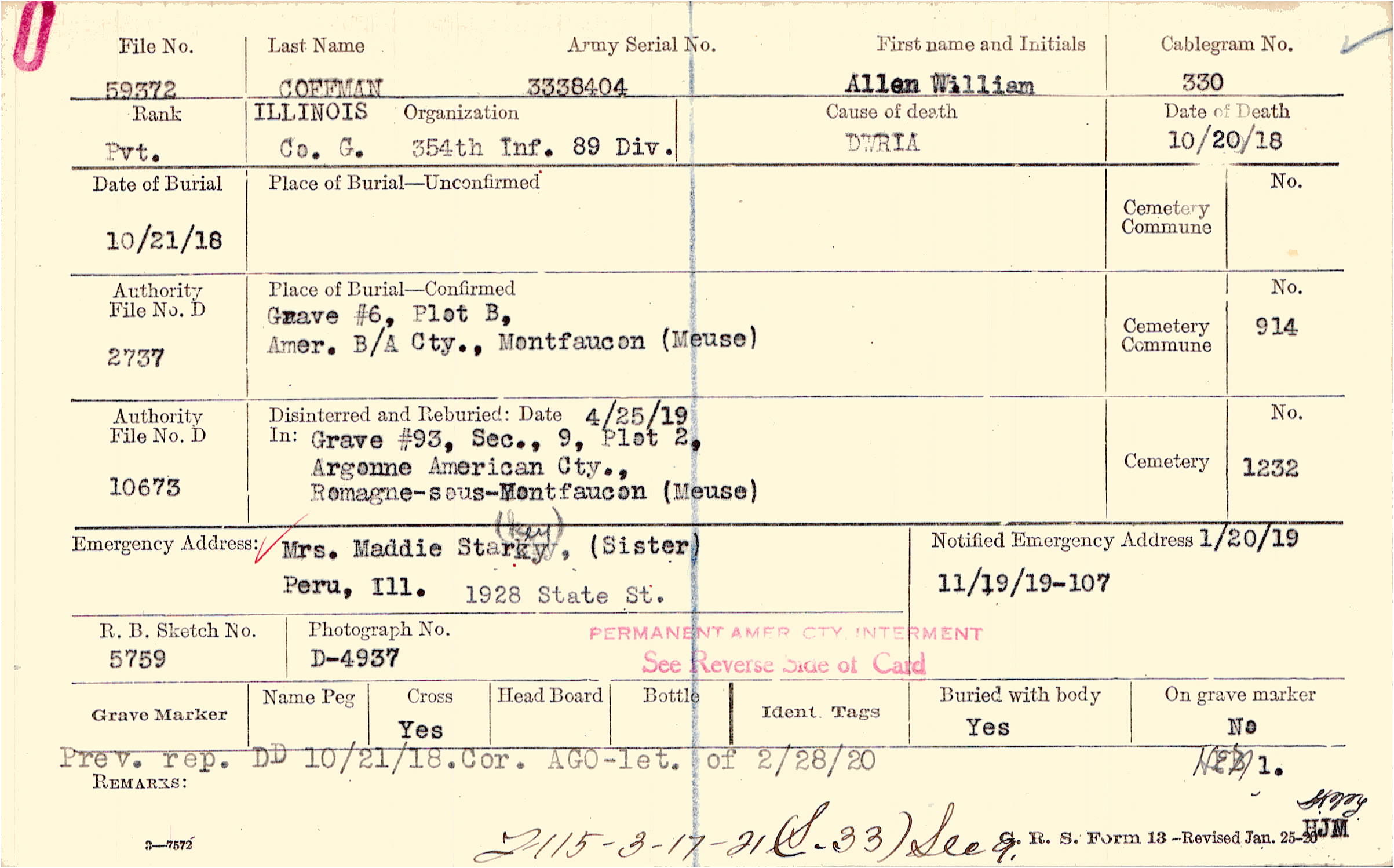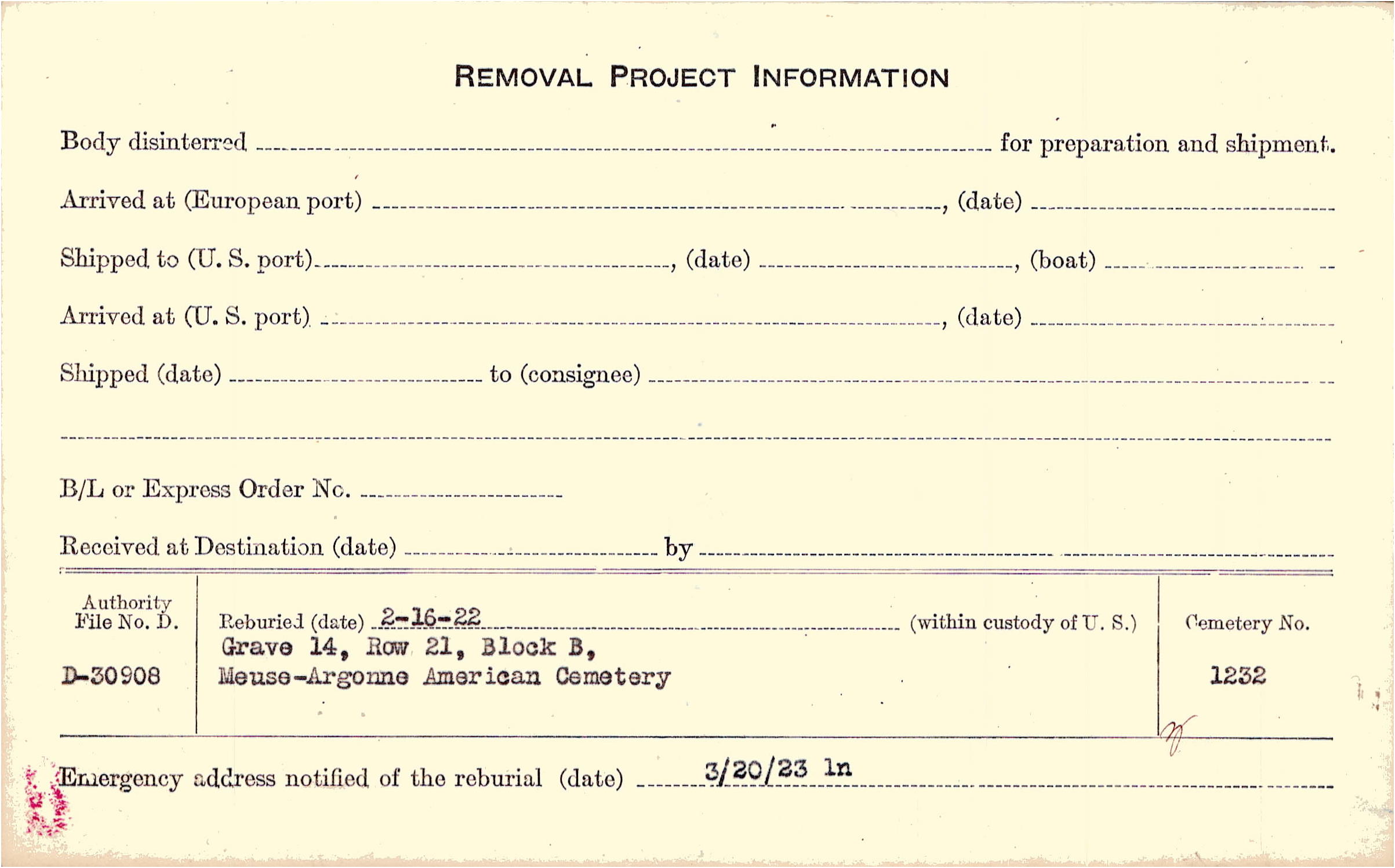 Grave #6, Plot B, Amer. B/A Cty., Montfaucon, Meuse