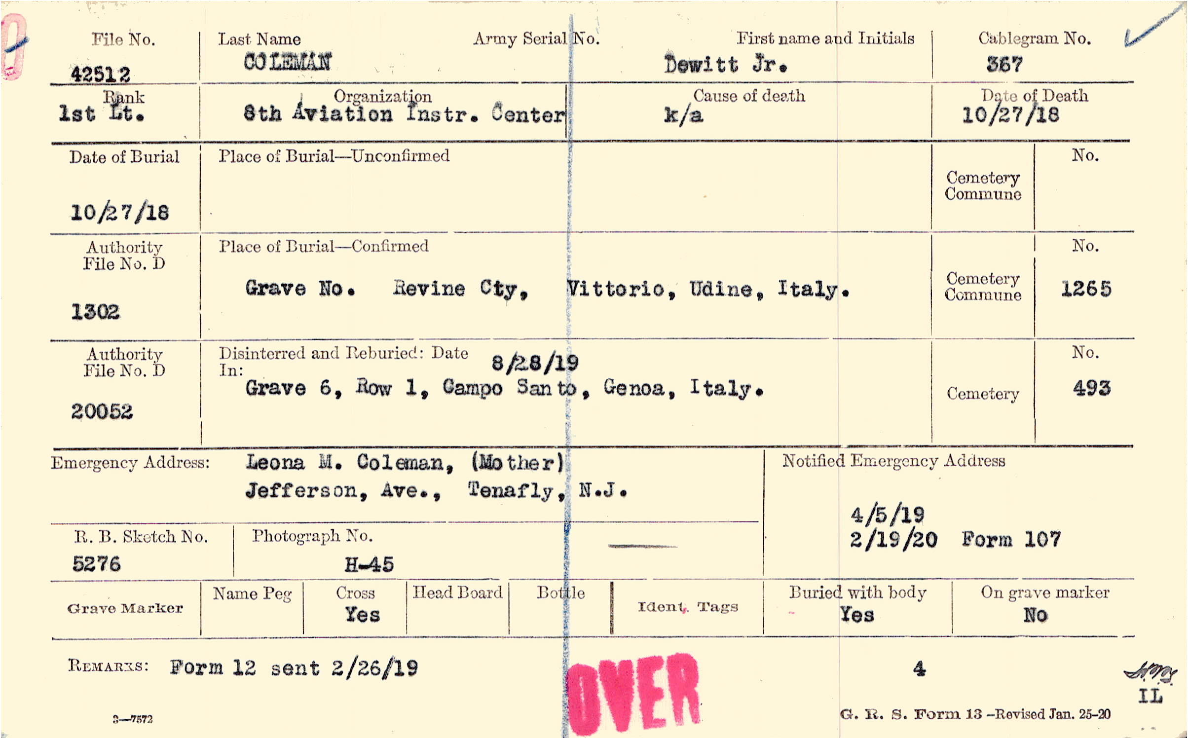 4/5/1919, Form 107: 2/19/1920