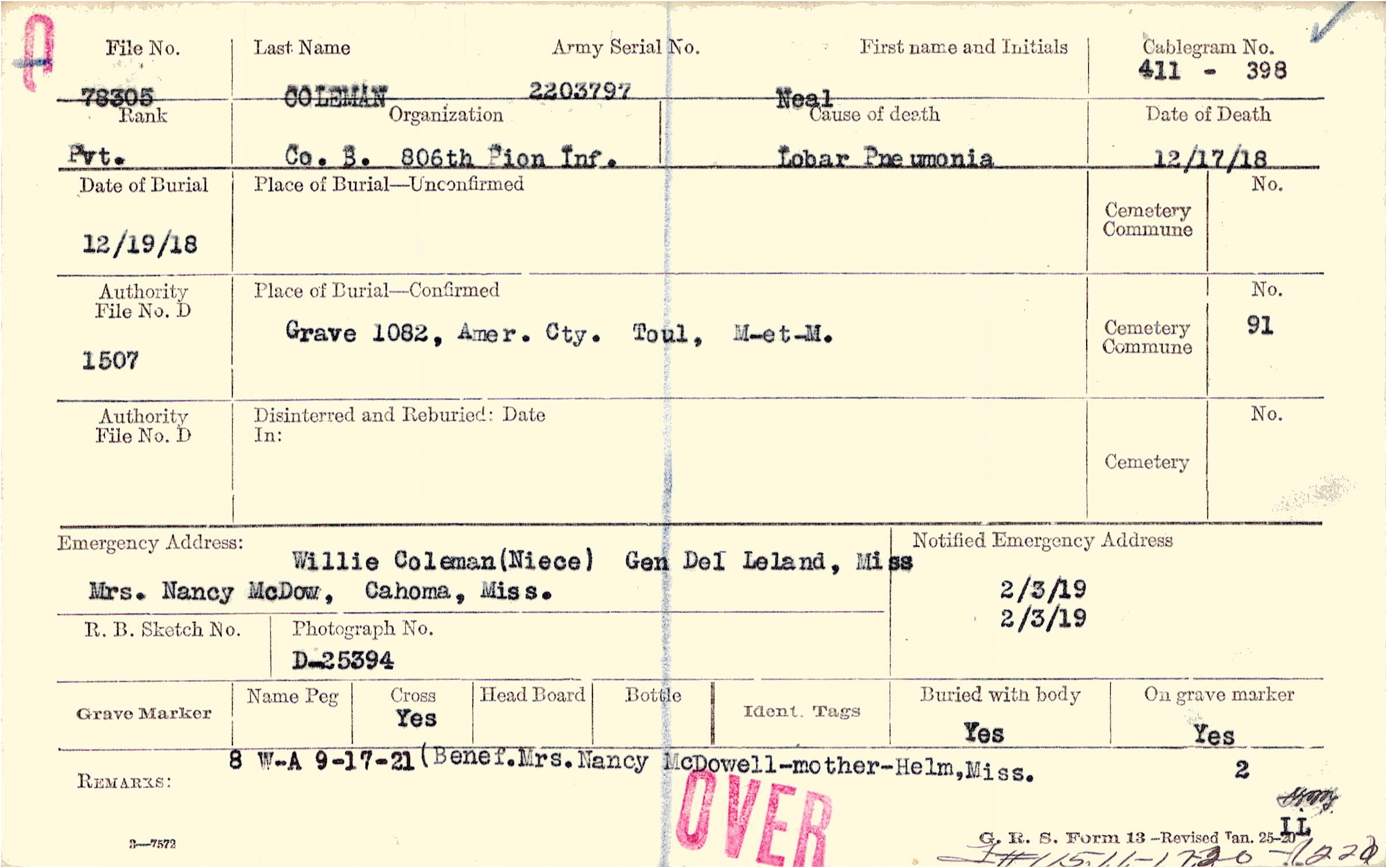 Grave 1082, Amer. Cty. Toul, M-et-M.