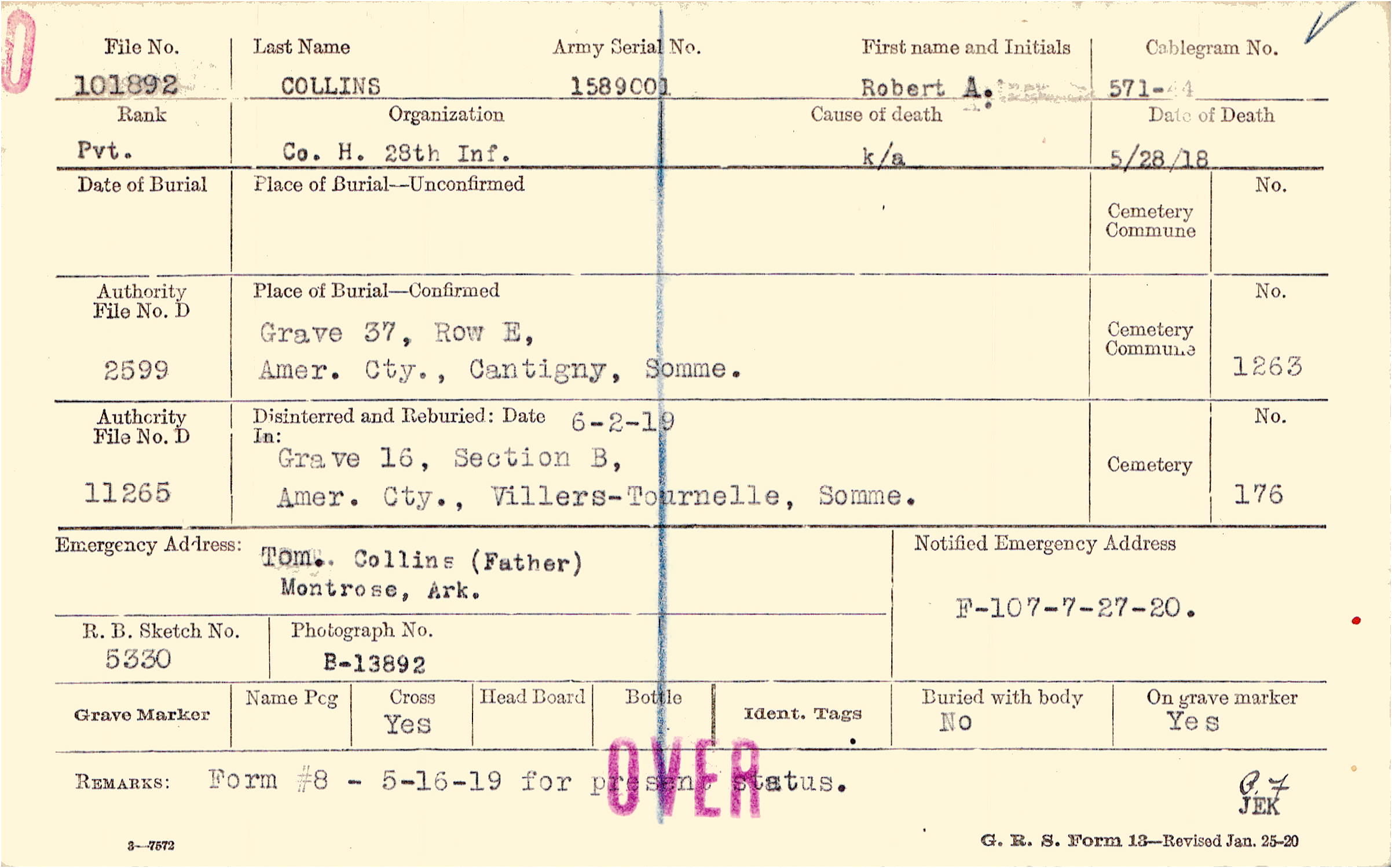 Grave 37, Row E, Amer. Cty., Cantigny, Somme.