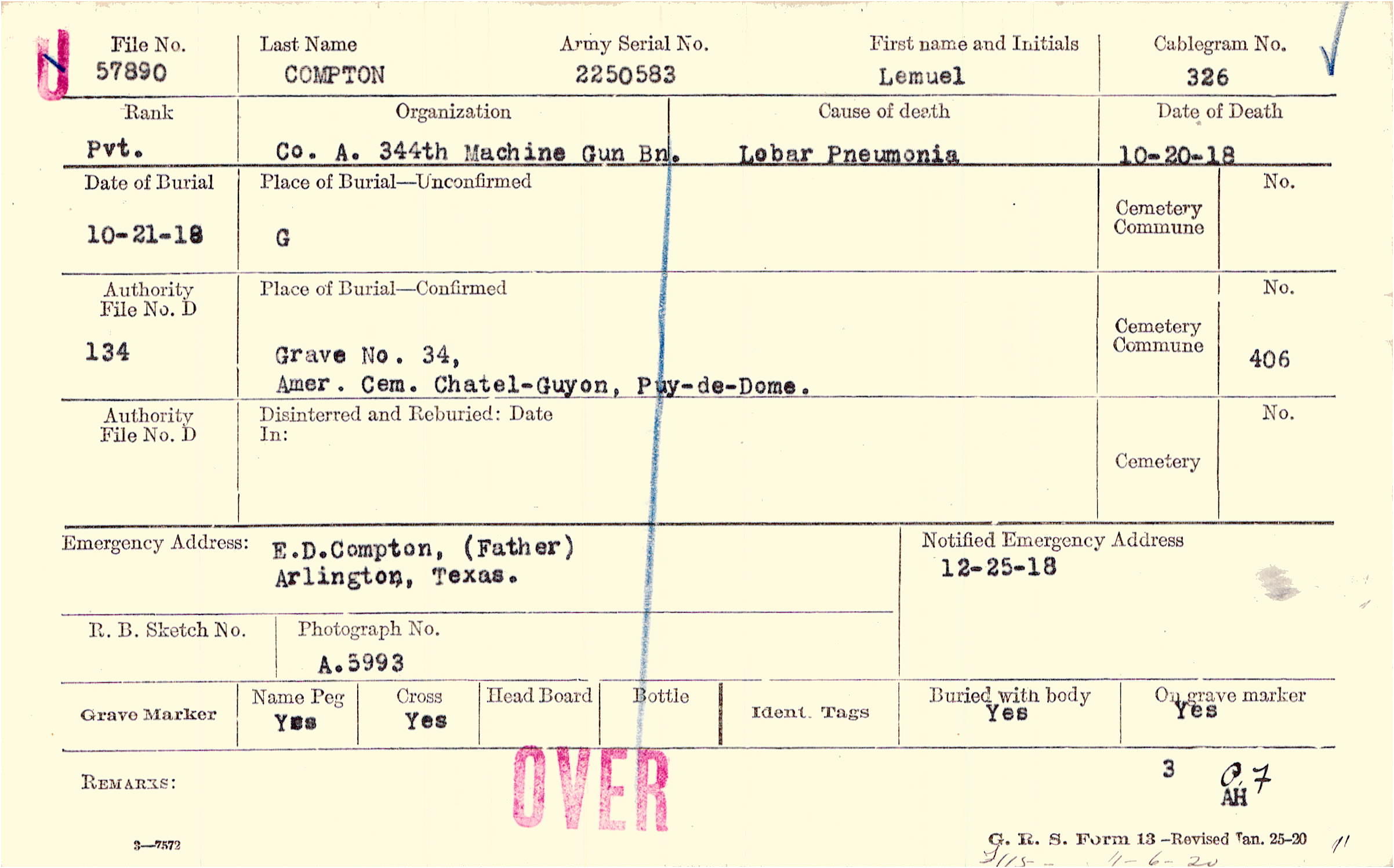 Grave 34, Amer. Cem., Chatel-Guyon. Puy-de-Dome