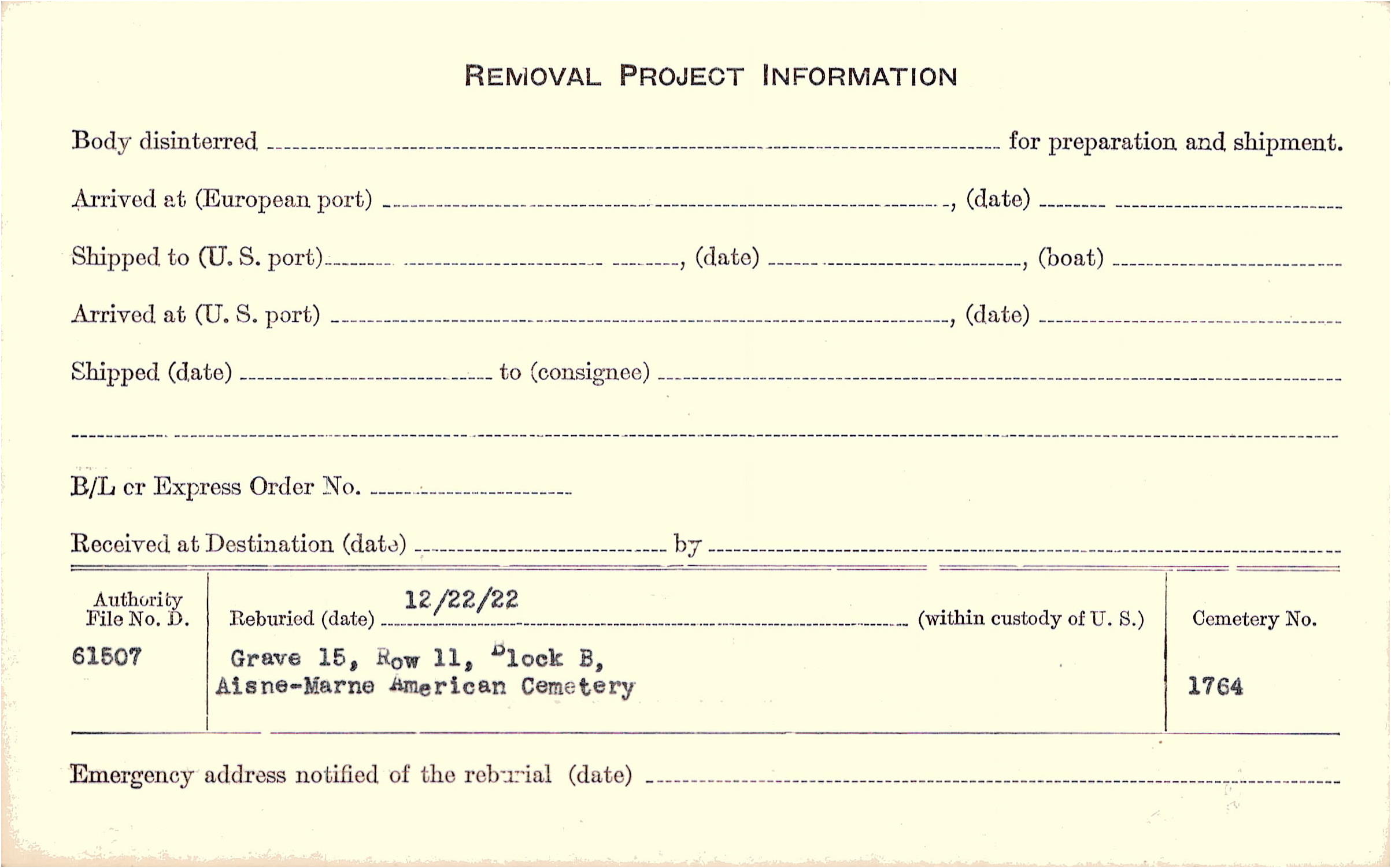 | Permanent Burial in Foreign Cemetery |