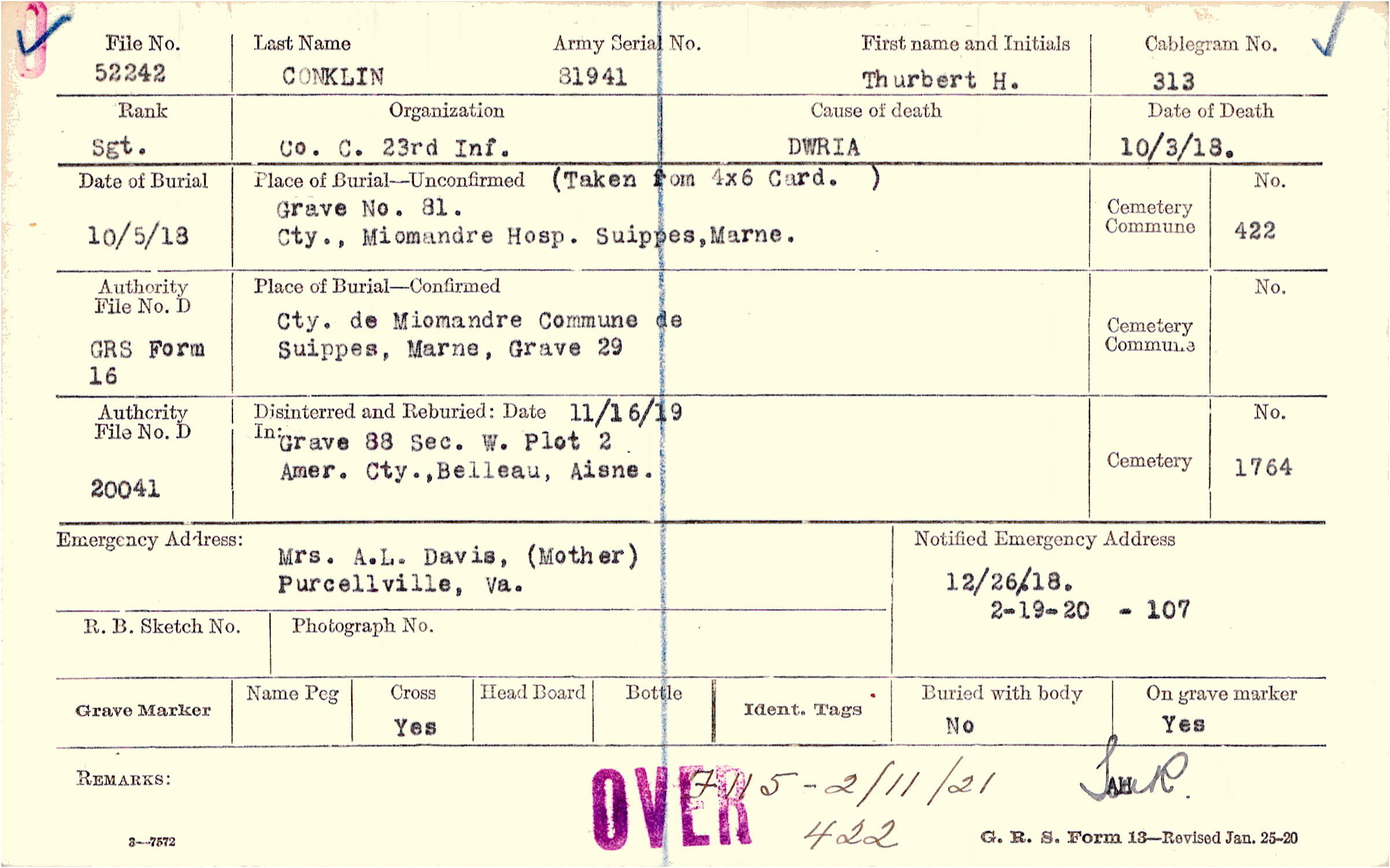 Mrs. A.L. Davis, (Mother), Purcellville, Va.