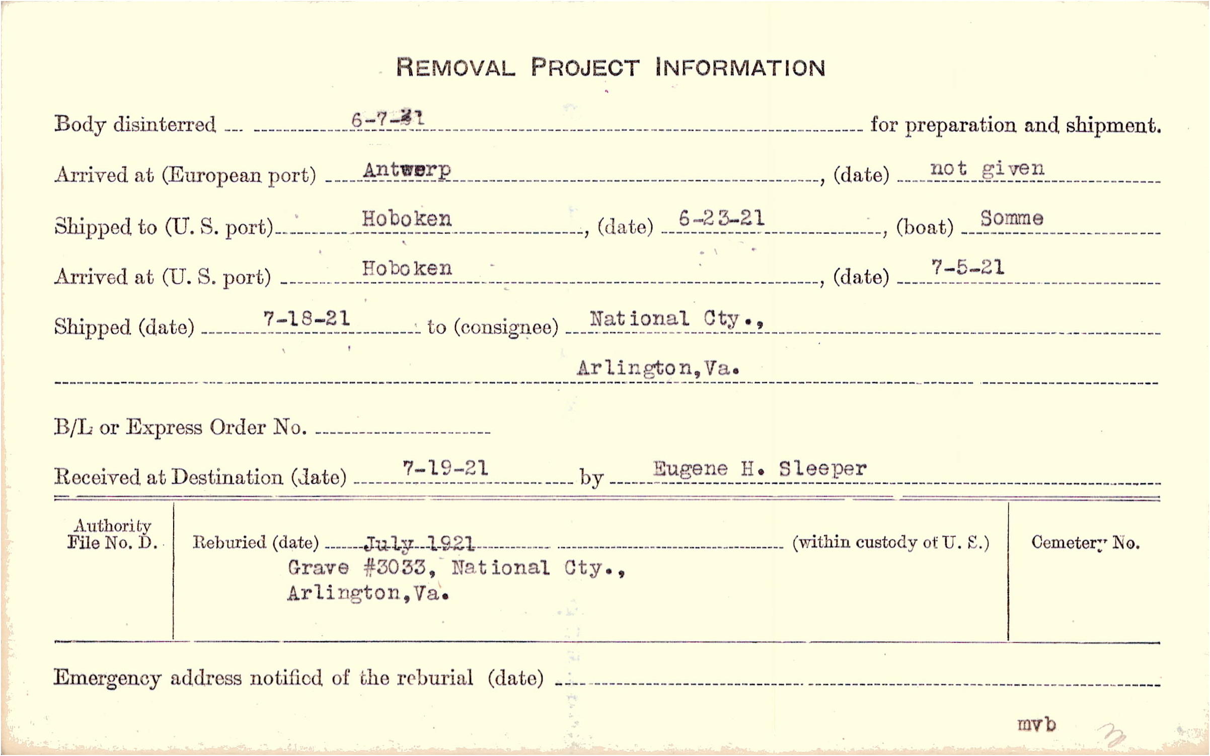 Grave 88, Section W, Plot 2, American Cemetery, Belleau, Aisne