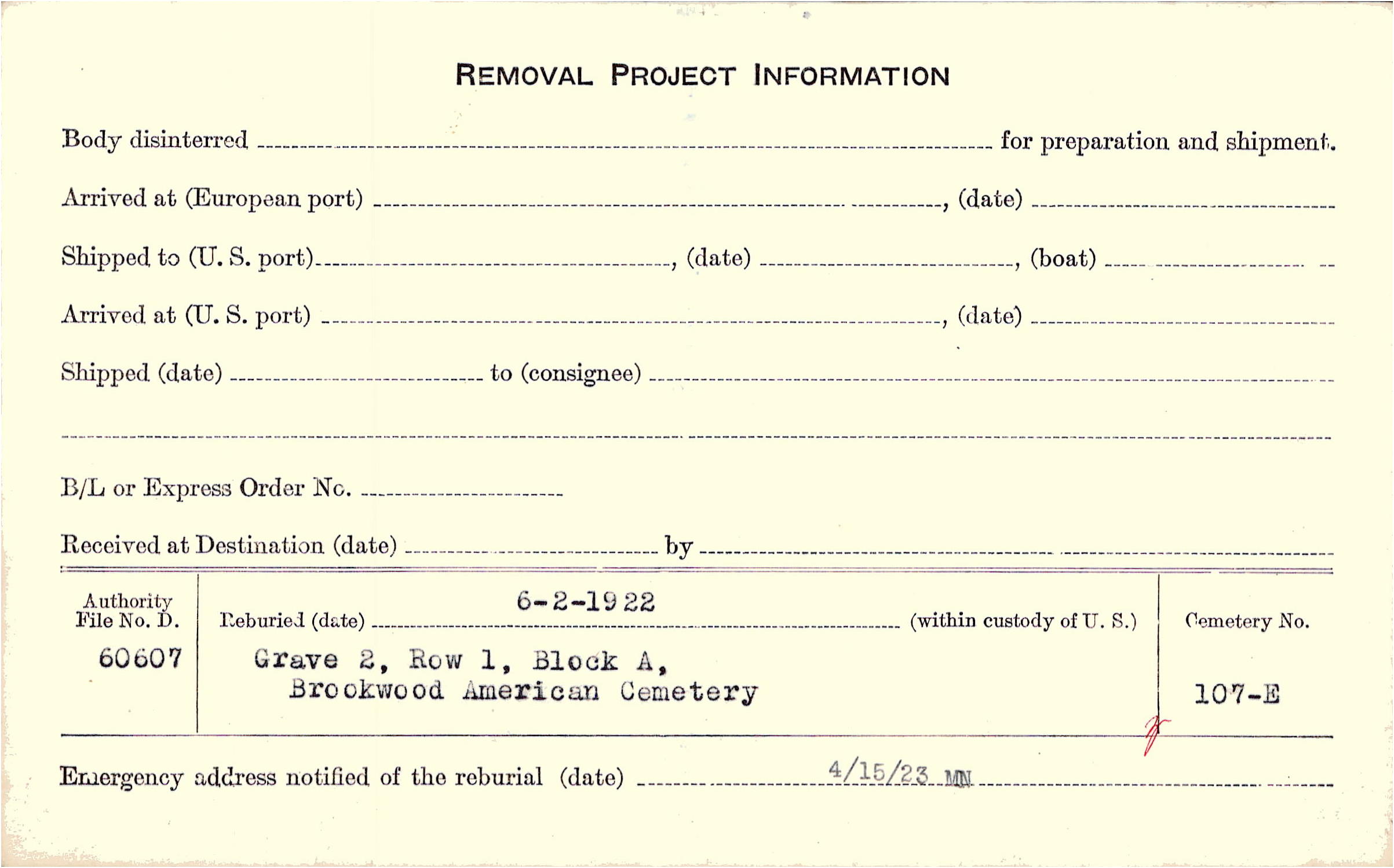 | Permanent Burial in Foreign Cemetery |