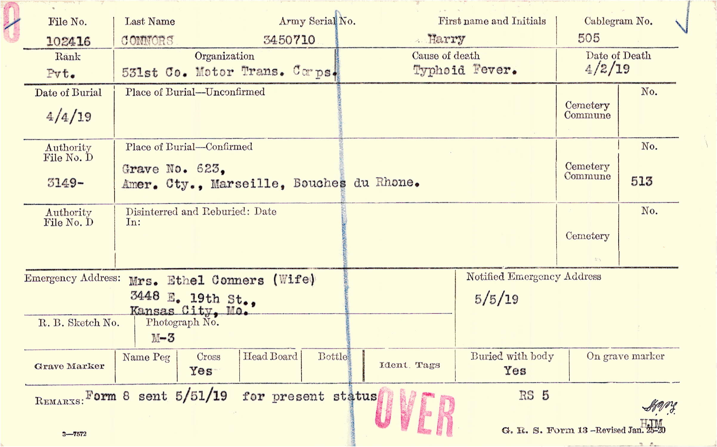 Mrs. Ethel Conners (Wife), 3448 E. 19th St., Kansas City, Mo.