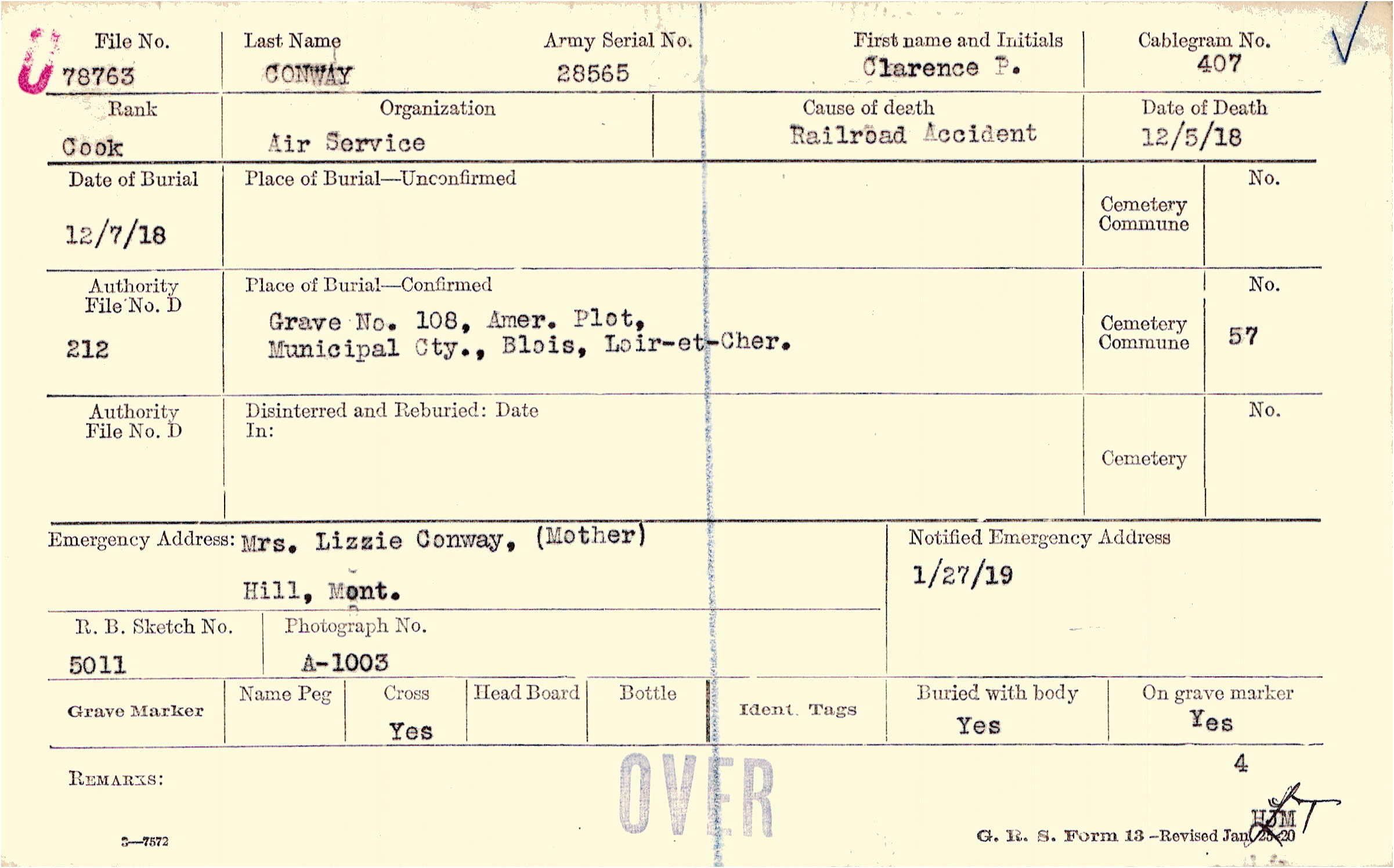Grave 108, Amer. Plot, Municipal Cty., Blois, Loir-et-Cher